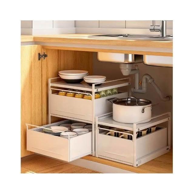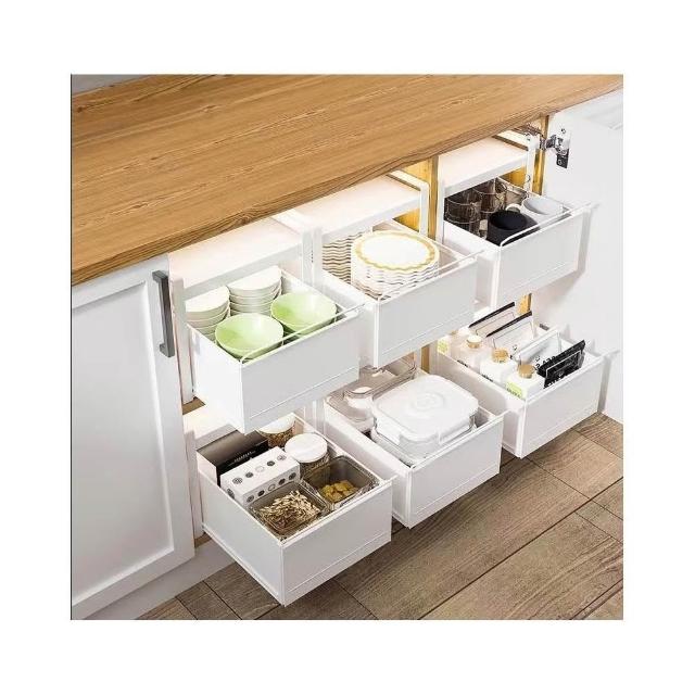 廚房櫥櫃拉籃抽屜式隔闆分層架滑軌調味碗盤抽拉收納盒碗碟置物架