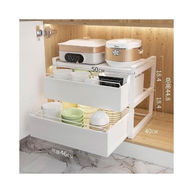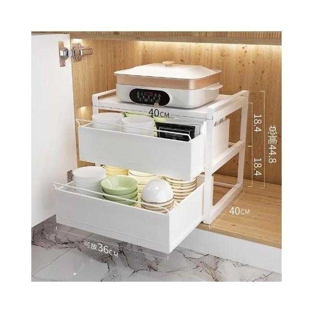 廚房櫥櫃拉籃抽屜式隔闆分層架滑軌調味碗盤抽拉收納盒碗碟置物架