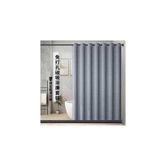 浴簾隔斷 折疊防水簾 掛簾 浴簾免打孔套裝浴室防水佈防黴磁性擋水條窗簾衛生間隔斷簾子門簾