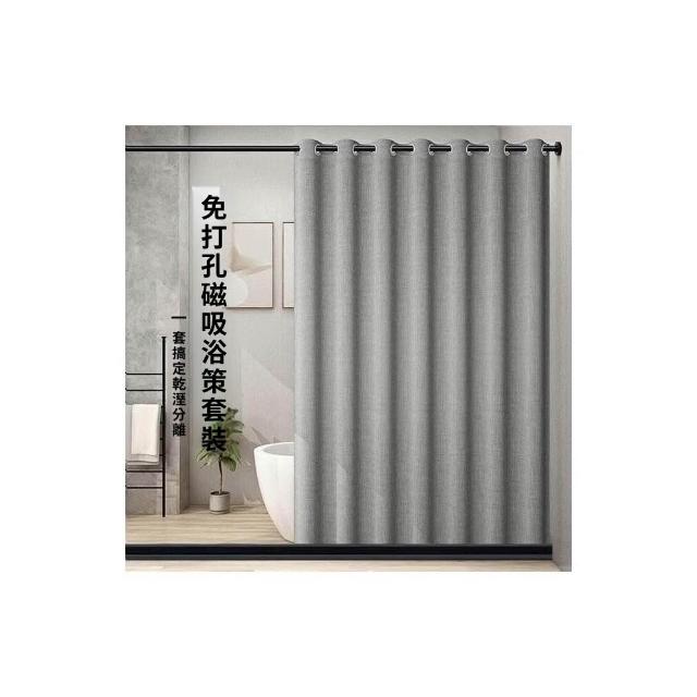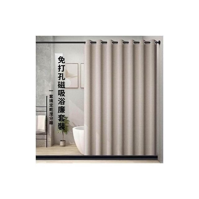 浴簾隔斷 折疊防水簾 掛簾 浴簾免打孔套裝浴室防水佈防黴磁性擋水條窗簾衛生間隔斷簾子門簾