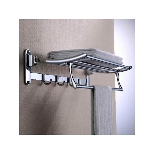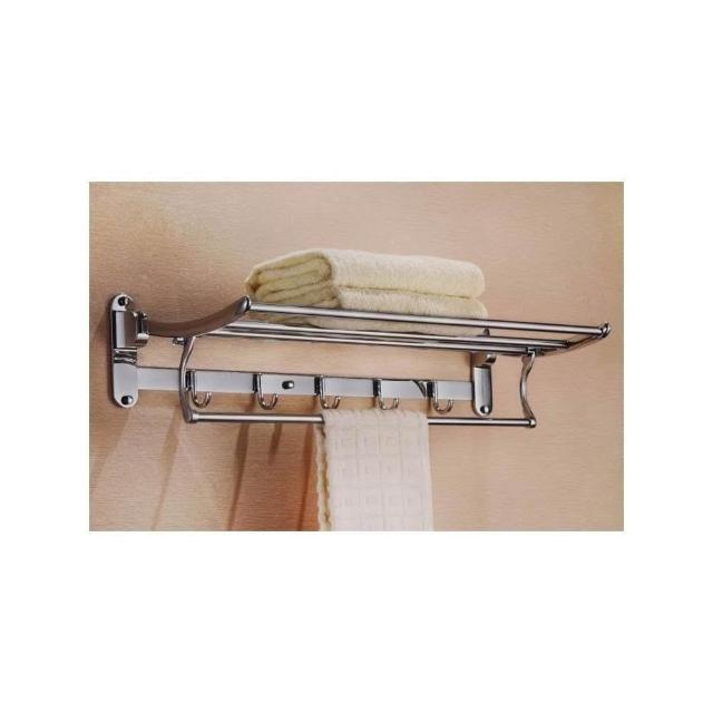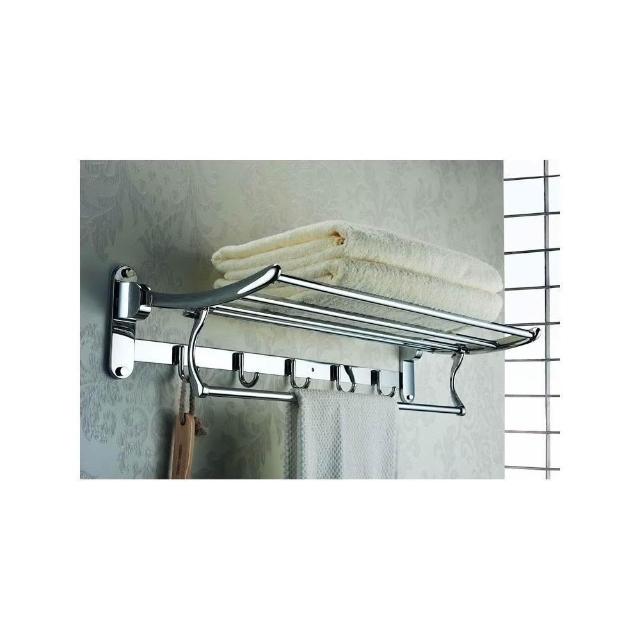 304不銹鋼浴巾架 浴室置物架 摺疊帶掛鈎毛巾架 衛生間置物架浴室五金掛件
