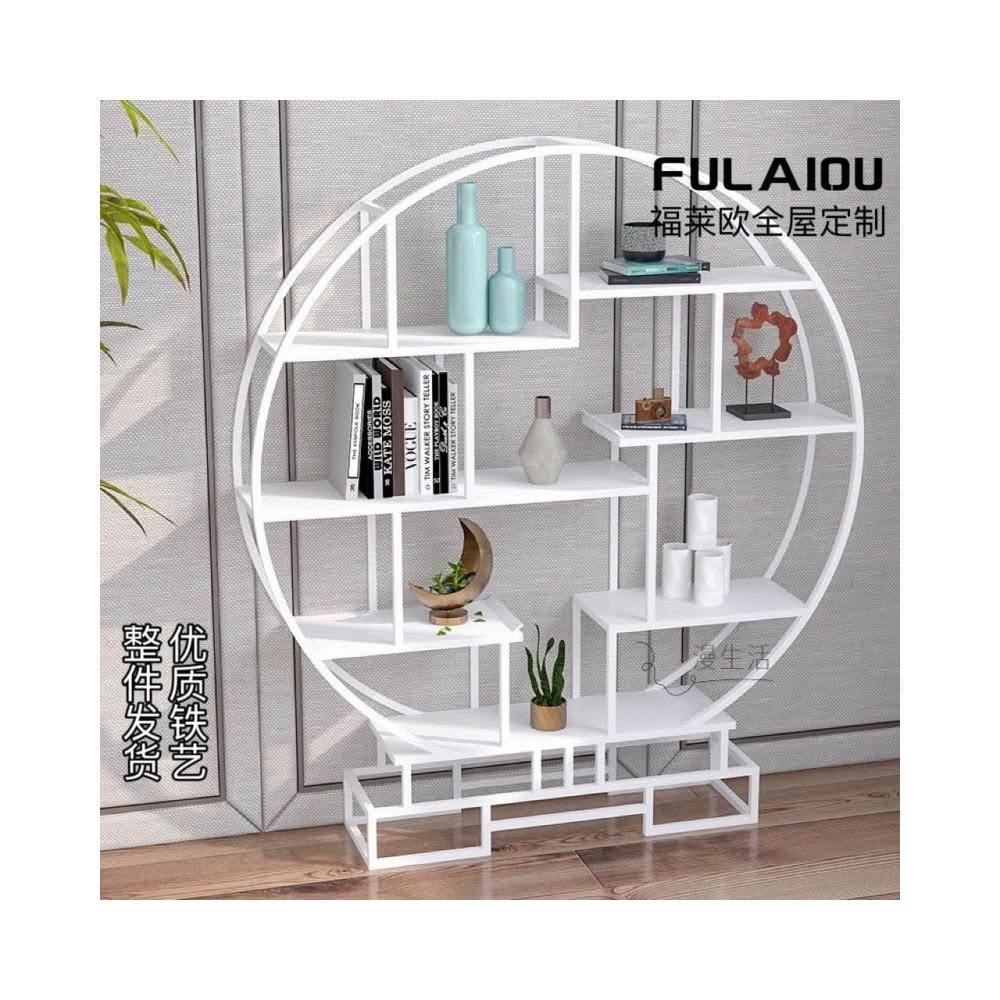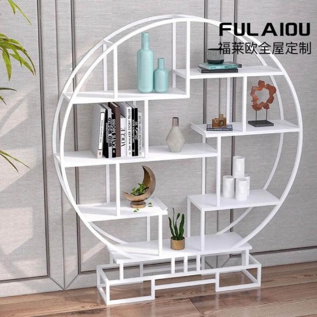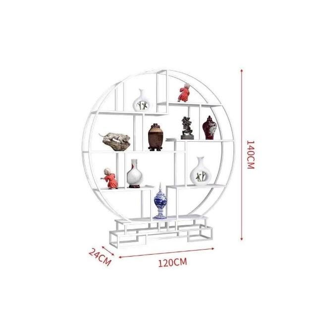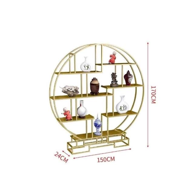 新中式圓形博古架鐵藝置物架書架收納架裝飾客廳擺放隔斷展示架子
