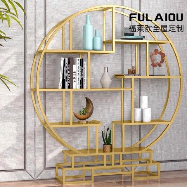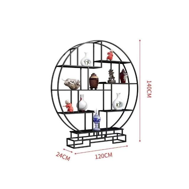 新中式圓形博古架鐵藝置物架書架收納架裝飾客廳擺放隔斷展示架子