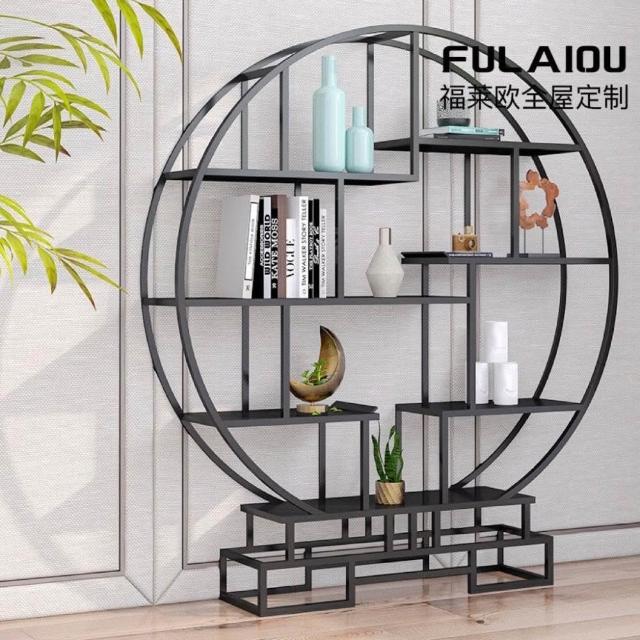新中式圓形博古架鐵藝置物架書架收納架裝飾客廳擺放隔斷展示架子