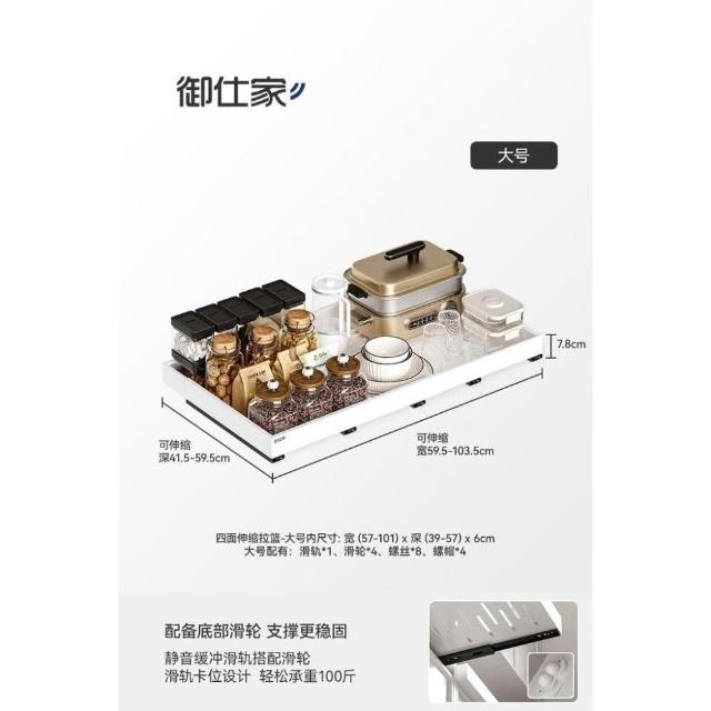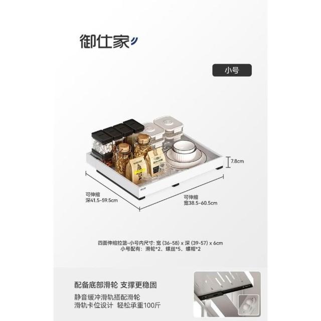四面伸縮拉籃 廚房深櫃抽拉式置物架 櫥櫃下水槽抽屜式收納架