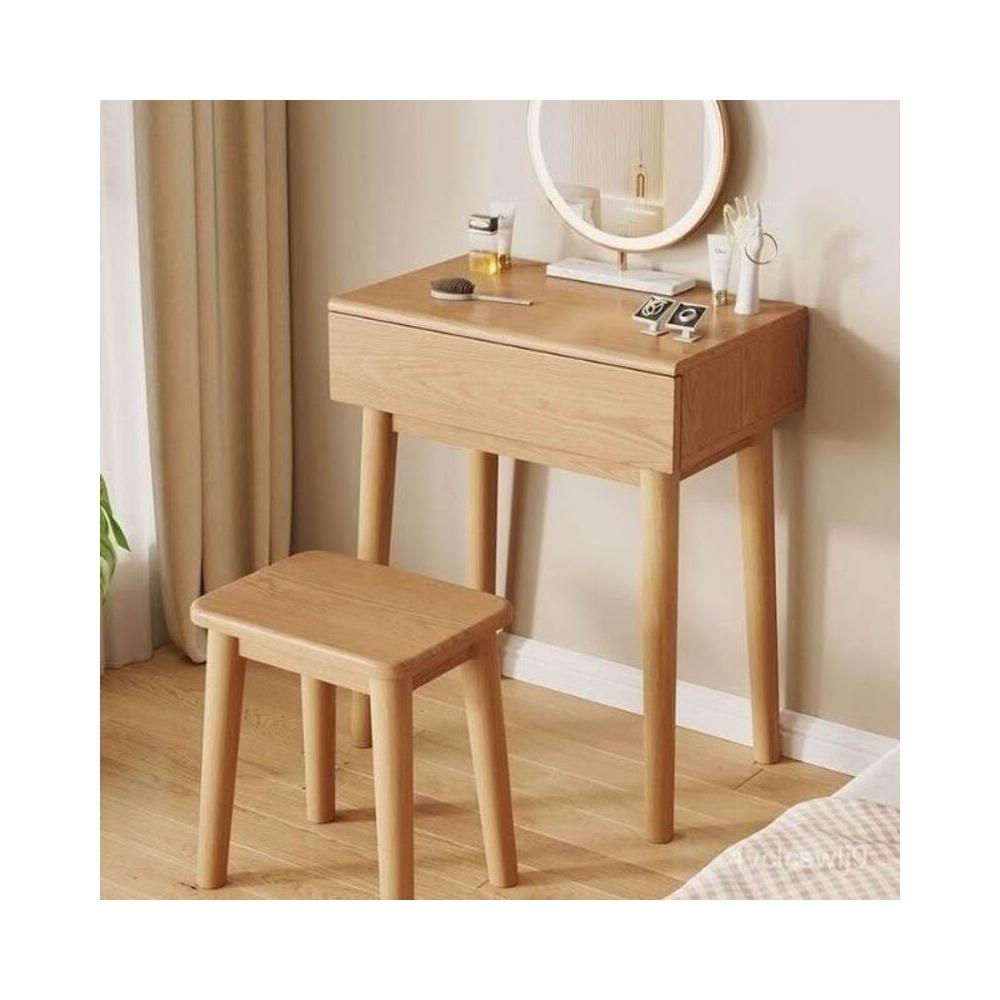 北歐實木梳妝臺 小戶型梳妝臺 化妝桌 床邊小桌子 40cm寬 臥室書桌 原木迷你化妝臺