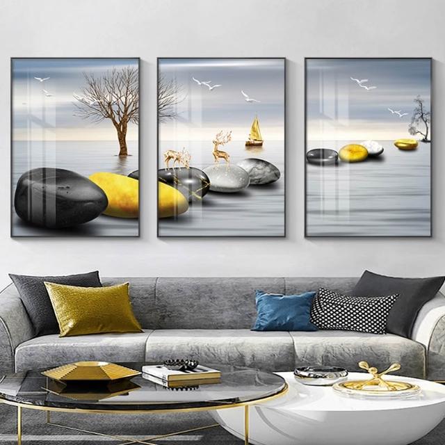 奢客厅装饰画现代简约沙发背景墙北欧壁画餐厅大气墙面三联挂画