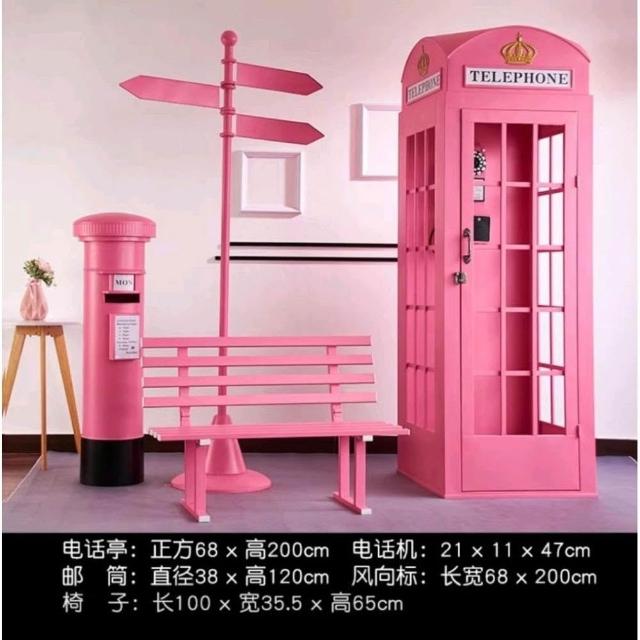 復古網紅電話亭套裝郵筒路標戶外酒吧裝飾大型拍攝道具模型大擺件