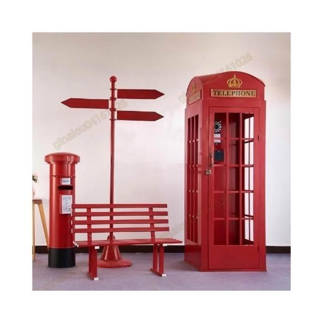 復古網紅電話亭套裝郵筒路標戶外酒吧裝飾大型拍攝道具模型大擺件