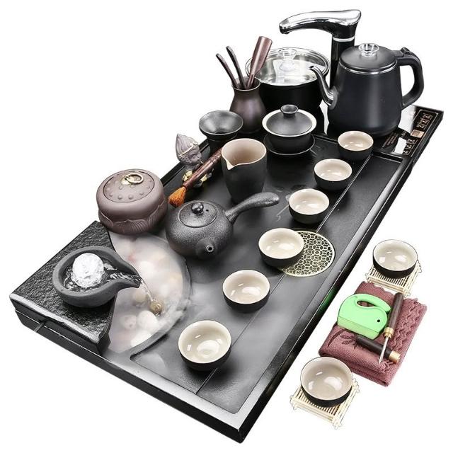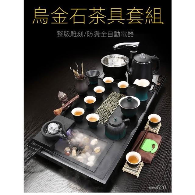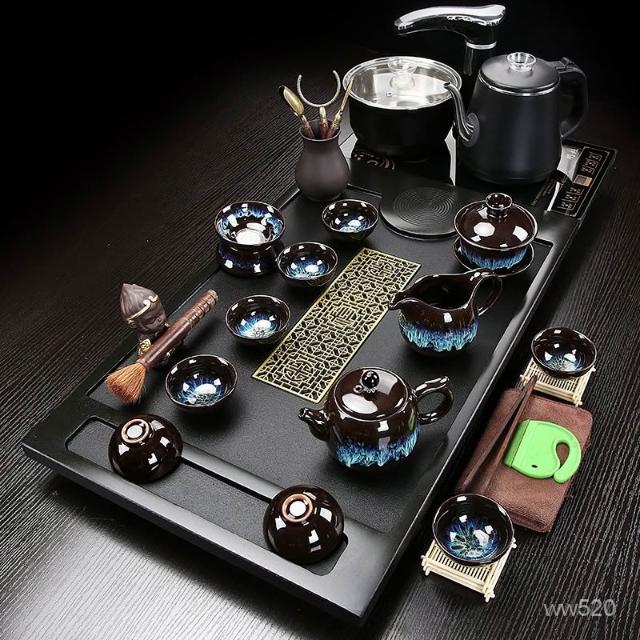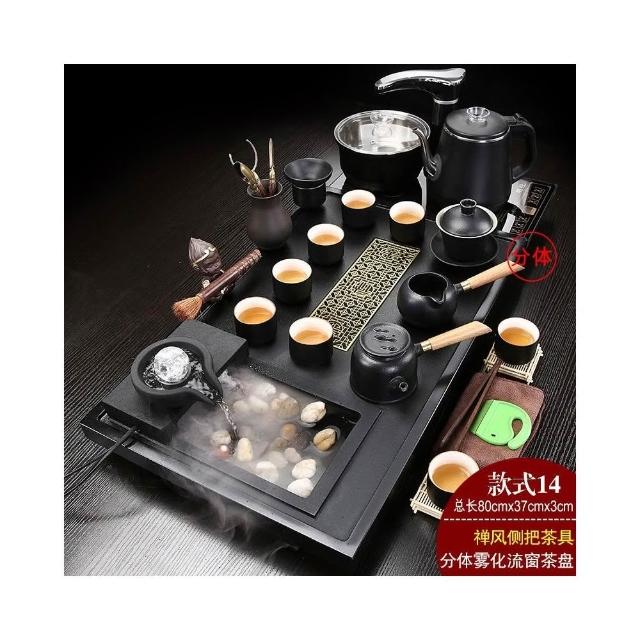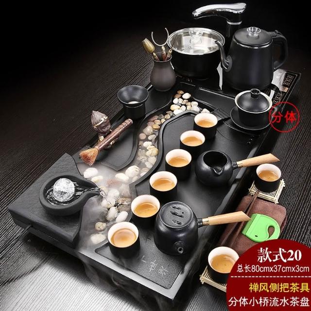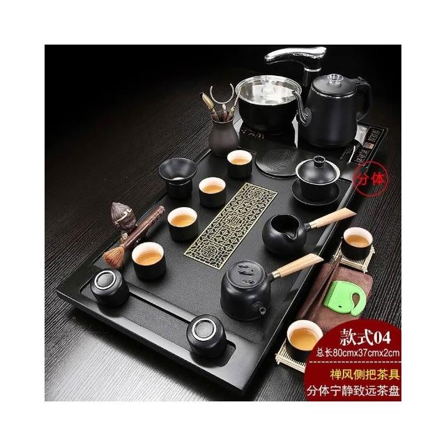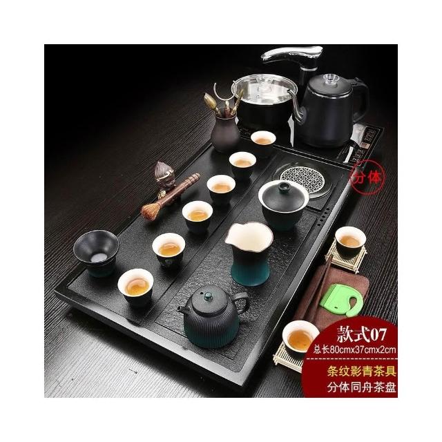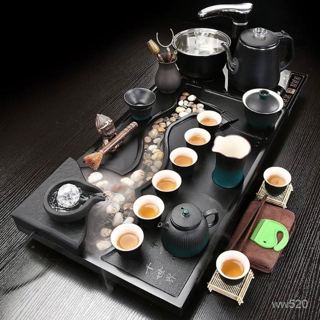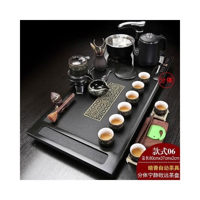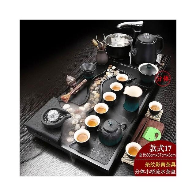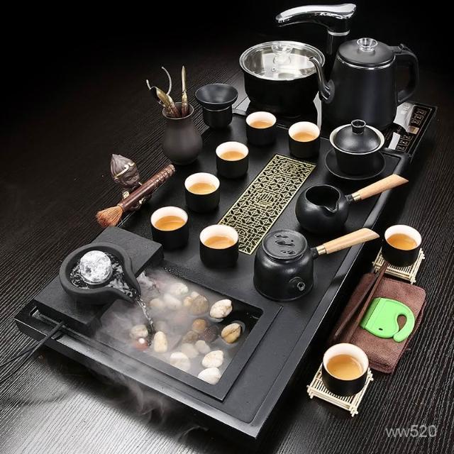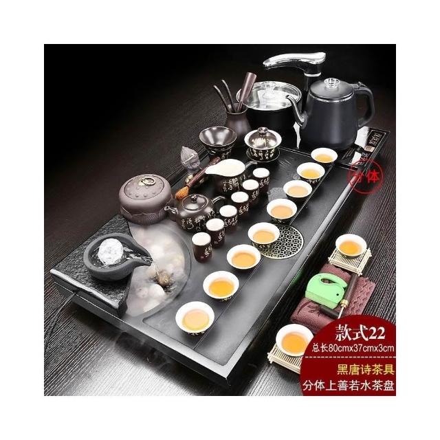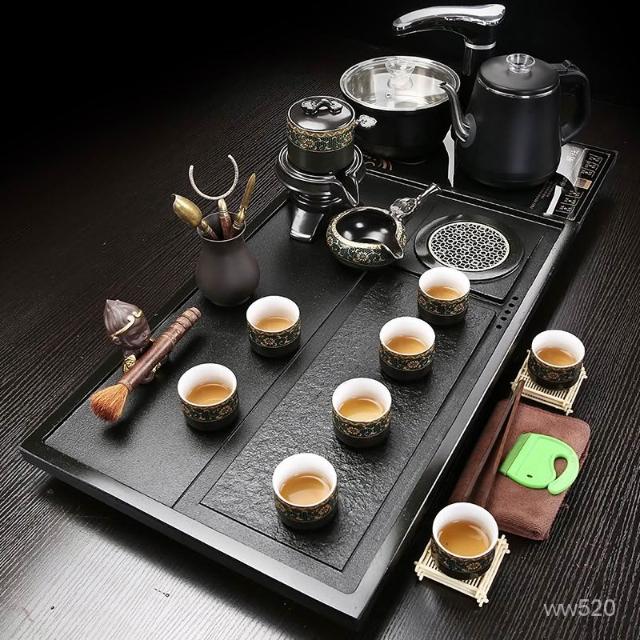天然乌金石茶具套装家用办公陶瓷简约小号石茶盘喝茶紫砂茶海整套