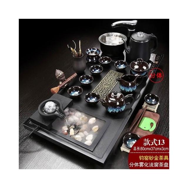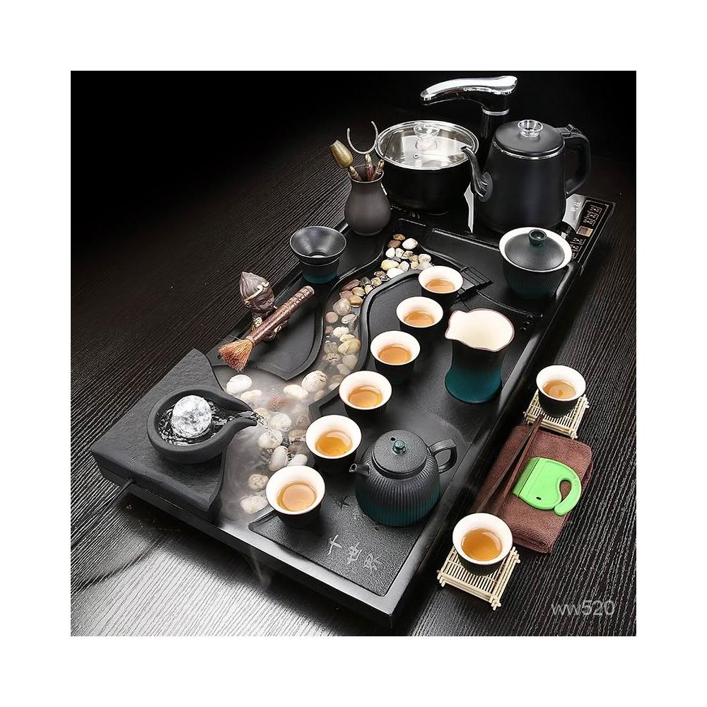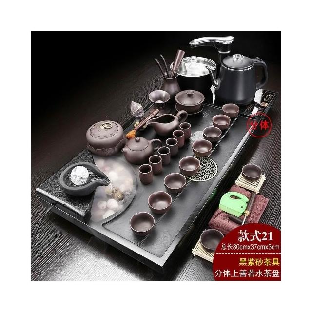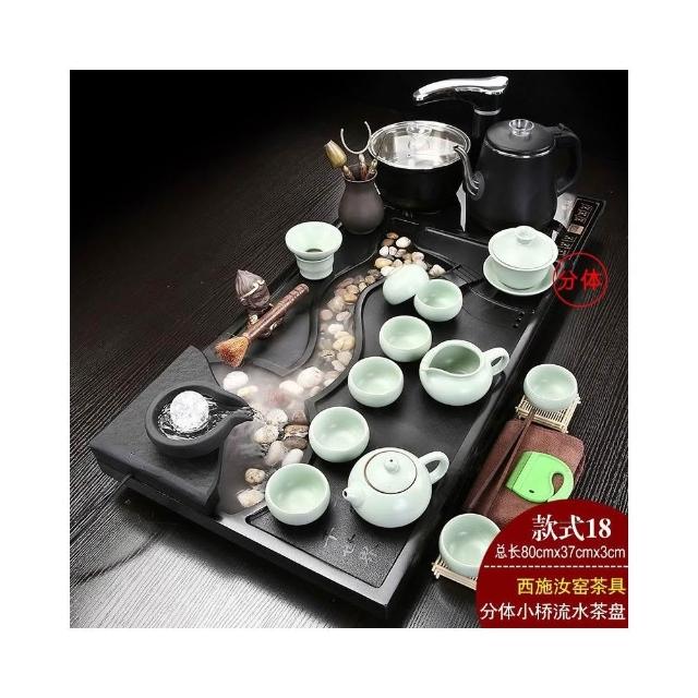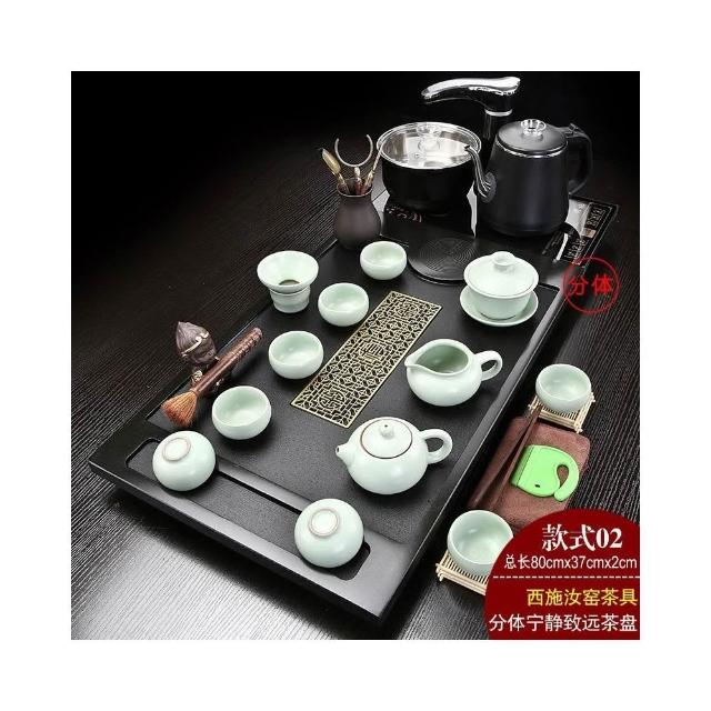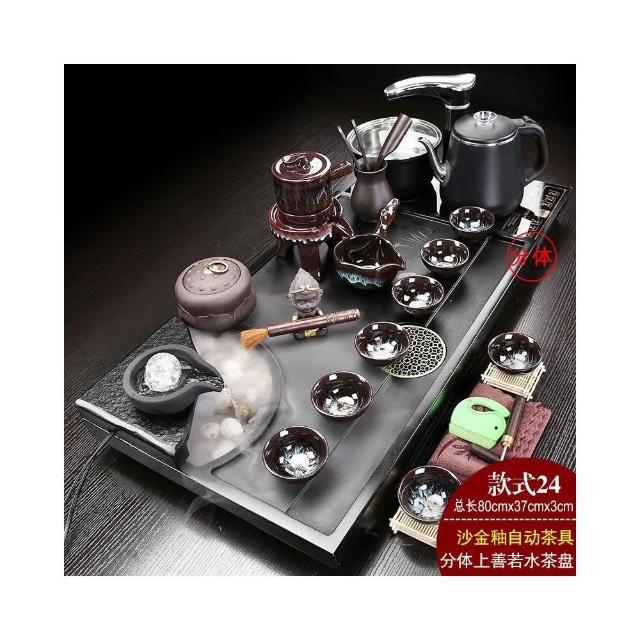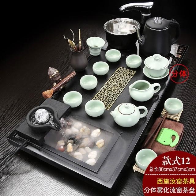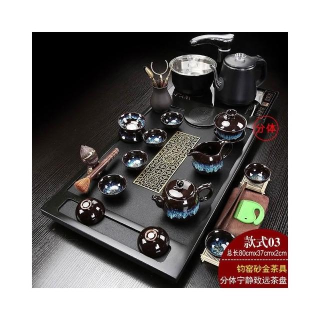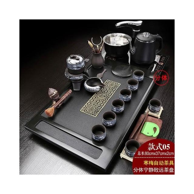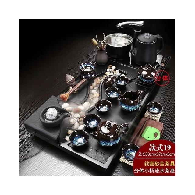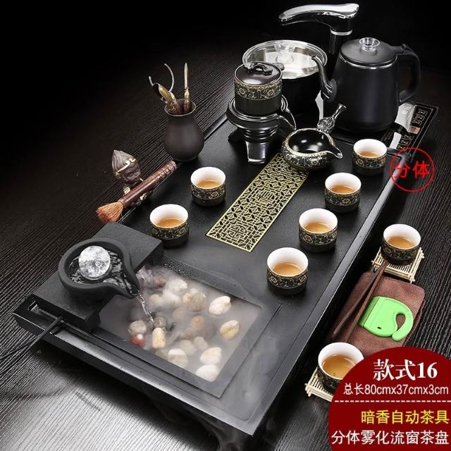 天然乌金石茶具套装家用办公陶瓷简约小号石茶盘喝茶紫砂茶海整套