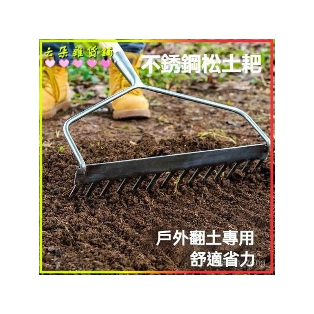 園藝森林不銹鋼鬆土耙戶外花園翻土鬆地摟草種花工具鋼耙除草神器新款開荒鬆土除草農用草耙子鋤頭