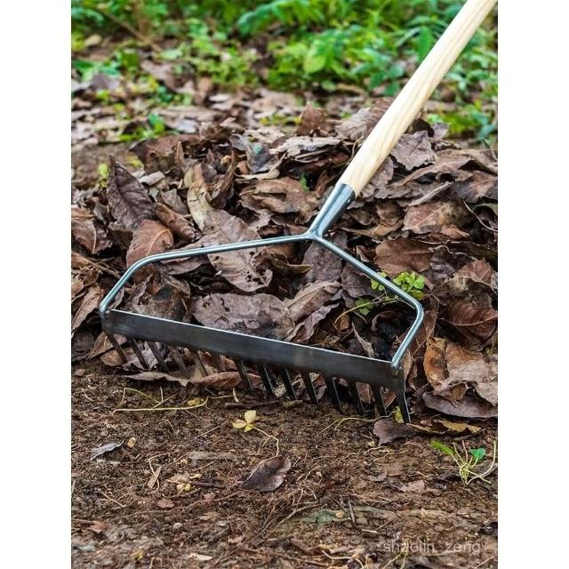 園藝森林不銹鋼鬆土耙戶外花園翻土鬆地摟草種花工具鋼耙除草神器新款開荒鬆土除草農用草耙子鋤頭