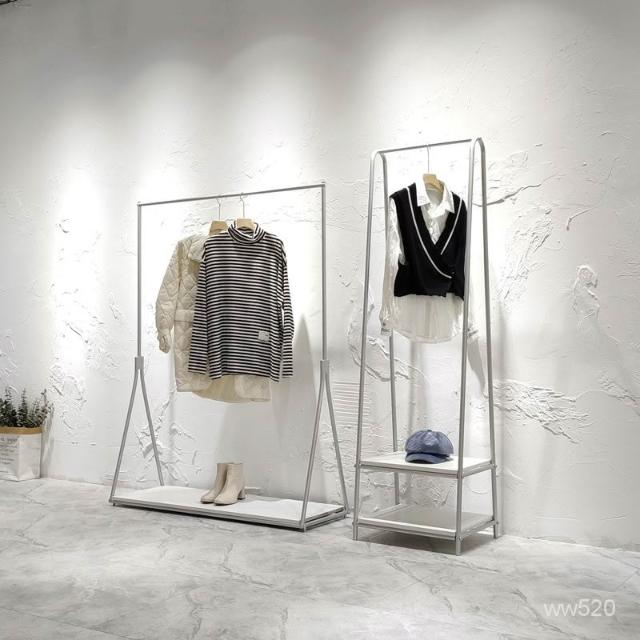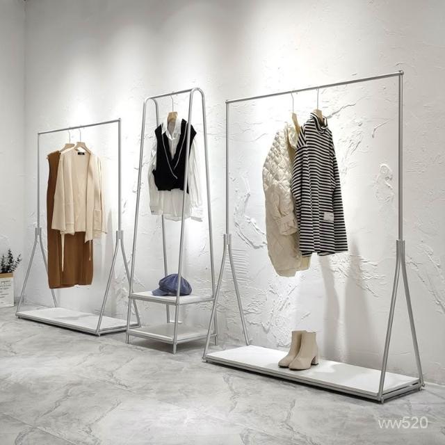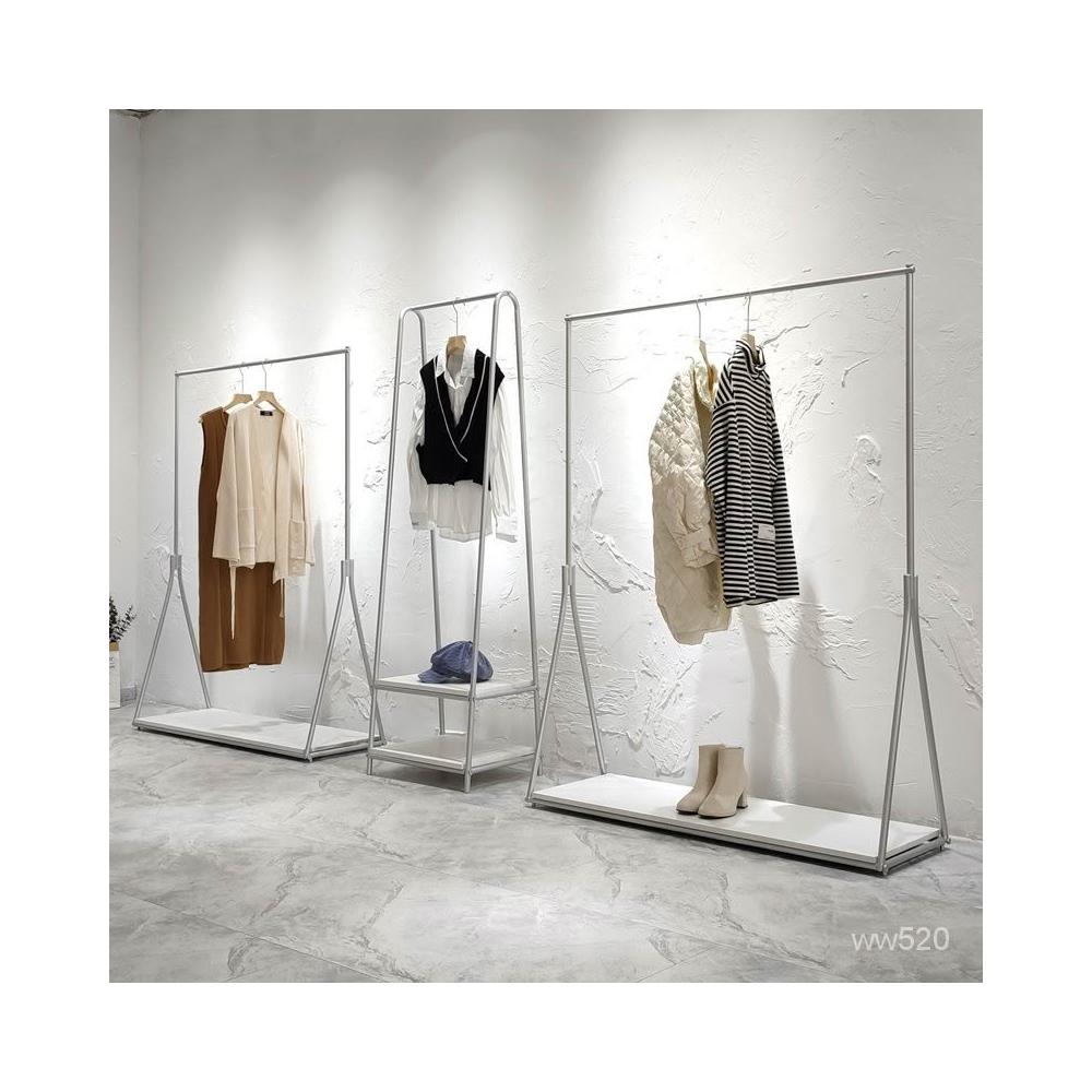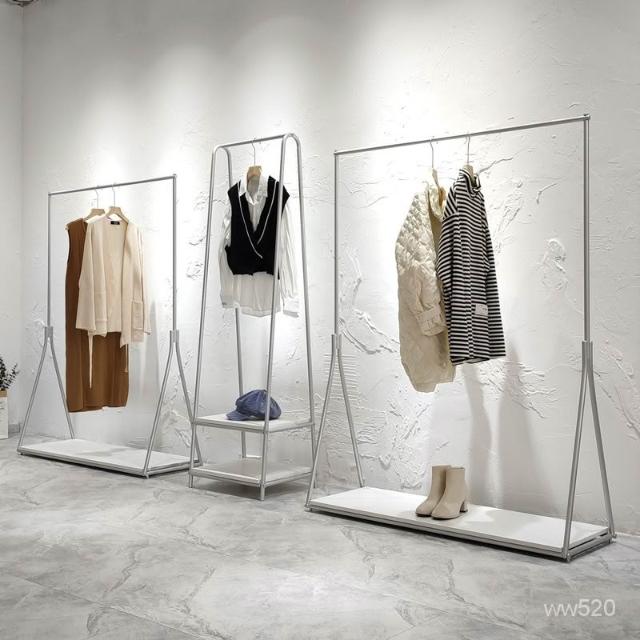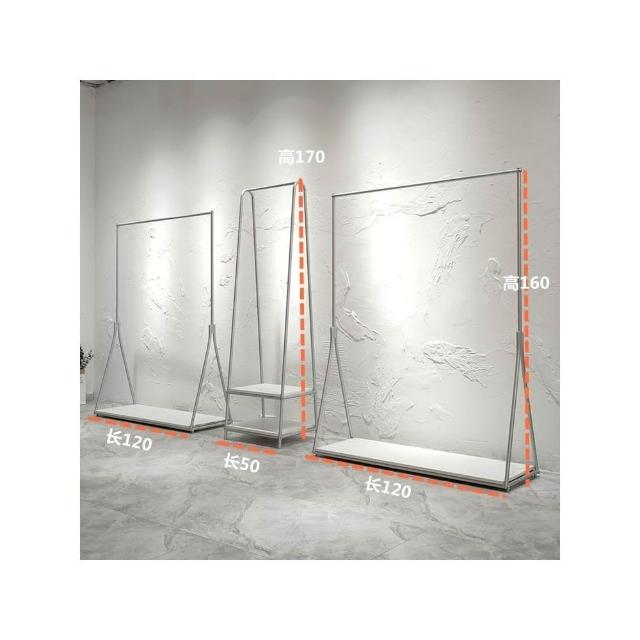 服装店展示架银色落地式挂衣架简约女装店货架陈列架侧挂衣服架子