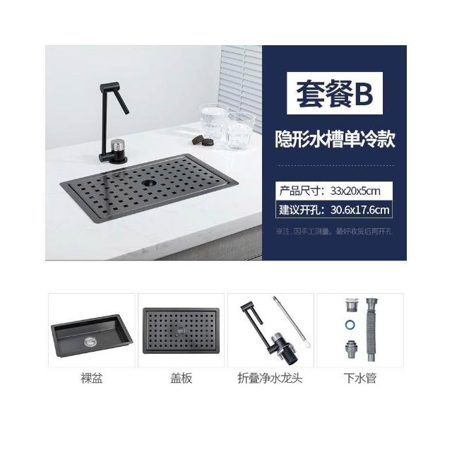廚房中島台吧台不銹鋼帶蓋隱藏式水槽納米餐邊櫃咖啡機迷你小單槽
