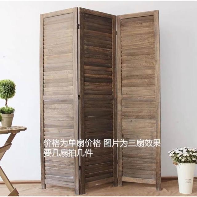 百葉屏風折疊移動 北歐簡約客廳臥室服裝實木複古做舊裝飾隔斷墻