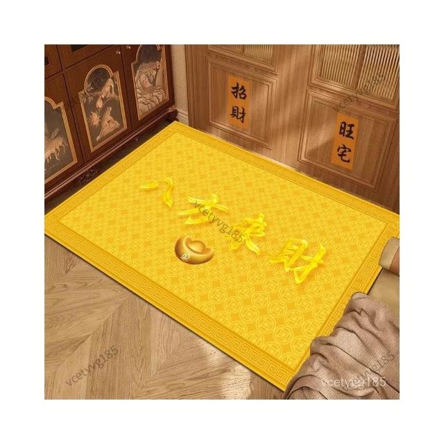 旺宅招財純黃色地墊入戶門金黃地毯銅錢招財進寶腳墊朝西對門化解馬年新年裝飾佈置 春節裝飾 過年裝飾品 店麵裝