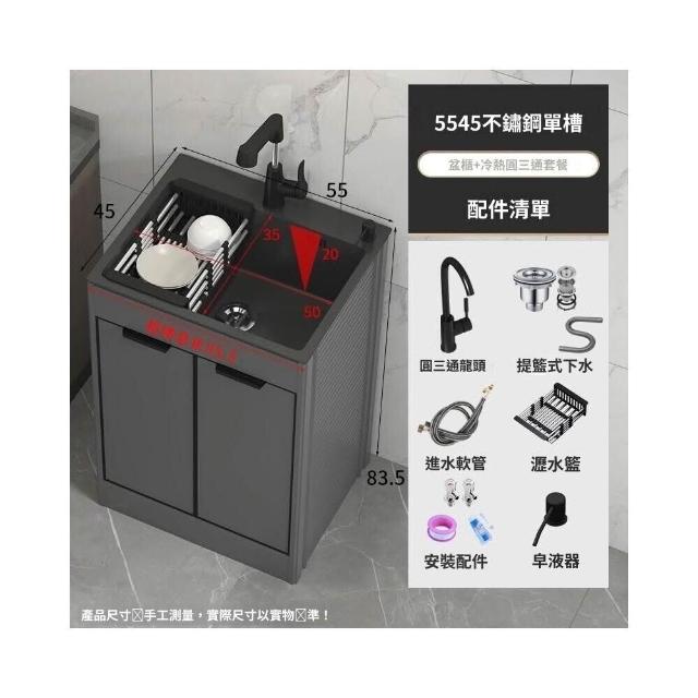 不銹鋼水槽櫥櫃洗菜盆廚房家用單槽陽台水槽一體落地式洗碗池雙槽