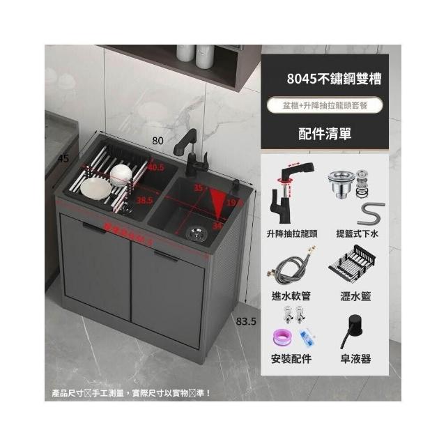 不銹鋼水槽櫥櫃洗菜盆廚房家用單槽陽台水槽一體落地式洗碗池雙槽