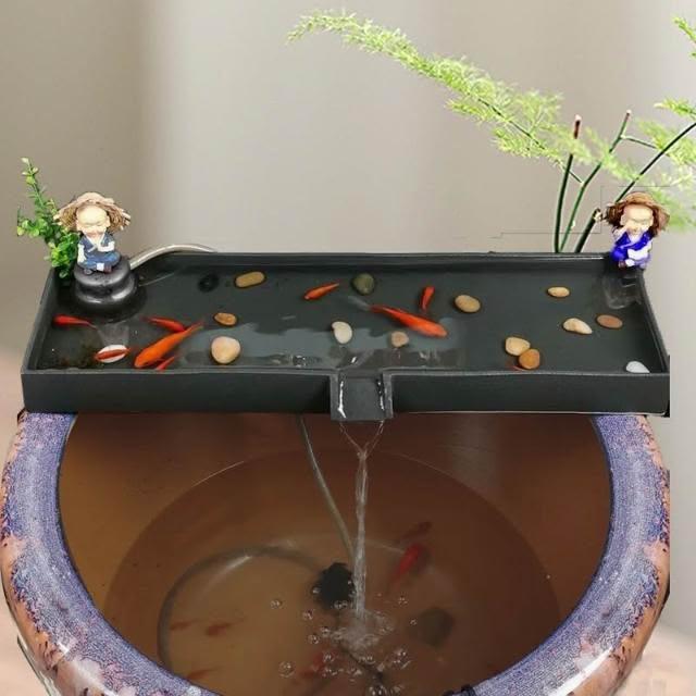 廠家直銷 創意陶瓷魚缸過濾養魚大水缸造景流水器簡約擺件假山魚池水池配件創意陶瓷工藝品裝飾 流水擺件魚缸風水輪招財擺飾