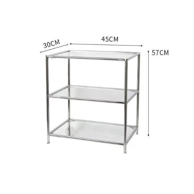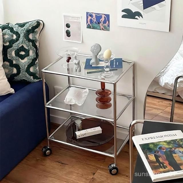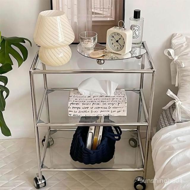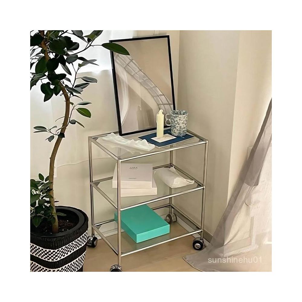 免運 金屬玻璃架 透明置物架 玻璃三層置物架 輕奢風玻璃邊幾 茶幾 床邊桌 工作室置物架