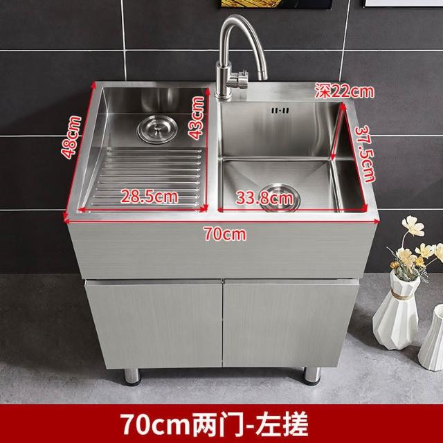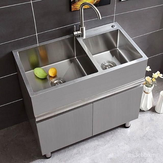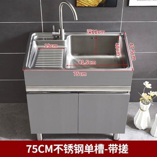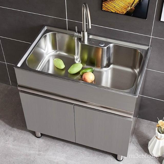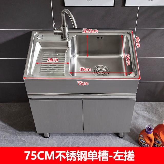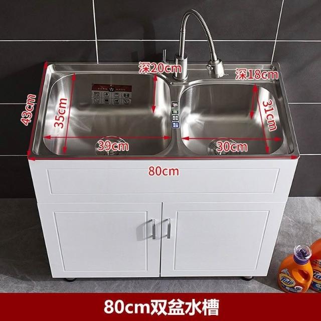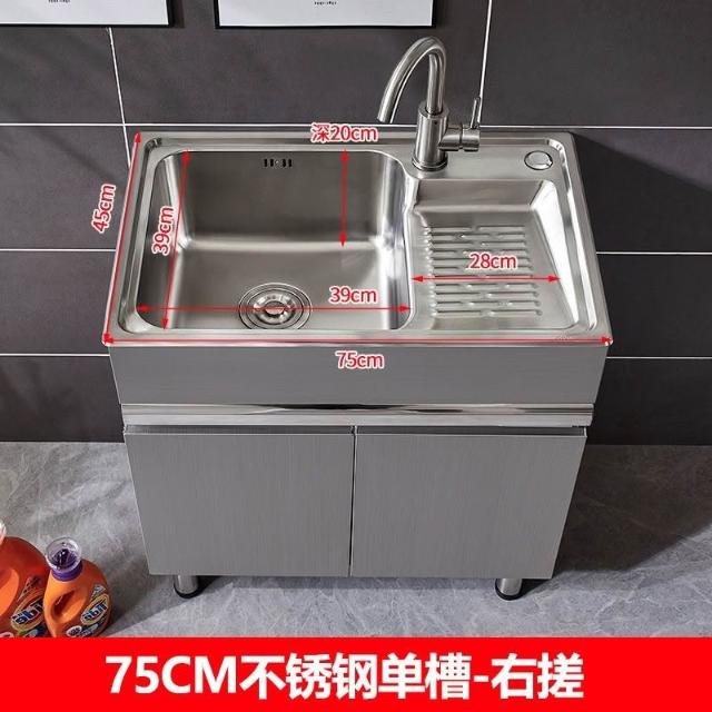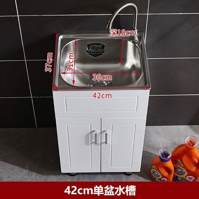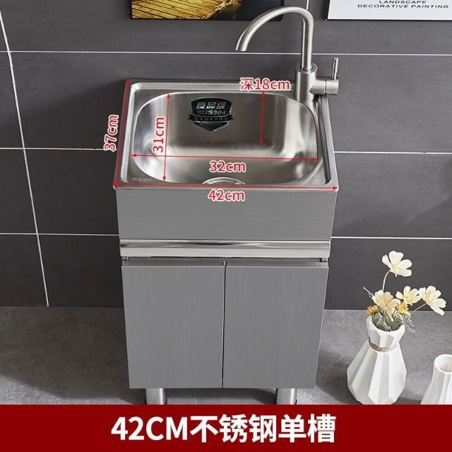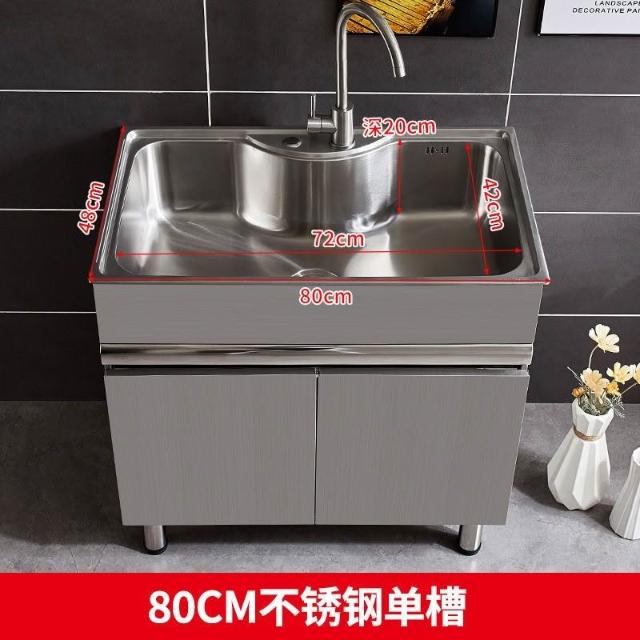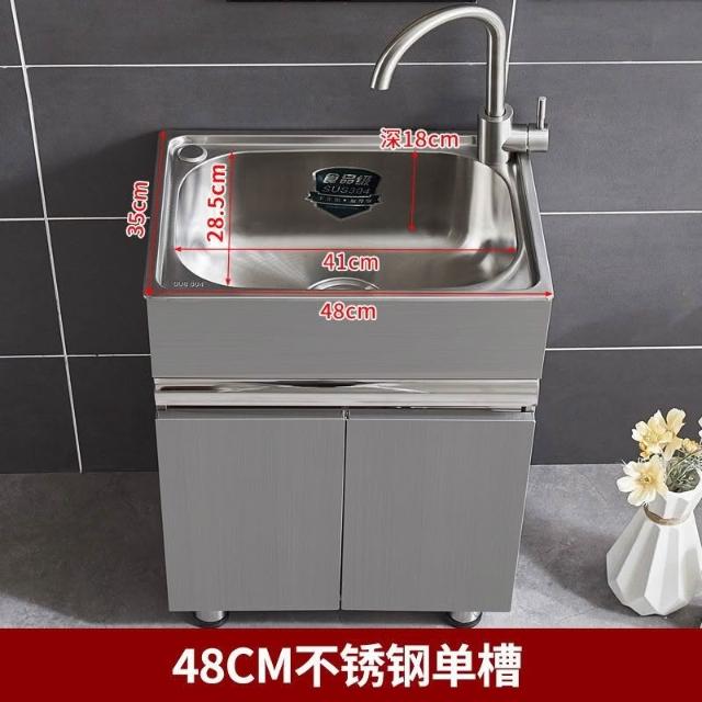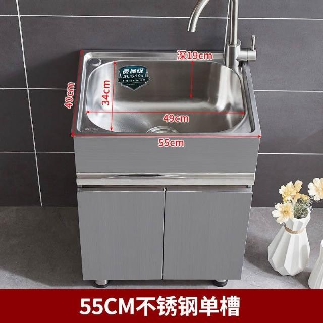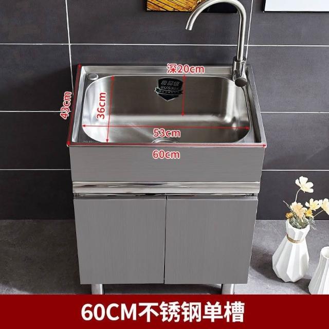 304不鏽鋼水槽不含龍頭 洗衣槽 洗手槽 洗菜盆 水槽櫃 洗衣櫃陽臺家用洗衣池單櫃落地式浴室櫃組閤帶搓闆 洗手臺 流理臺