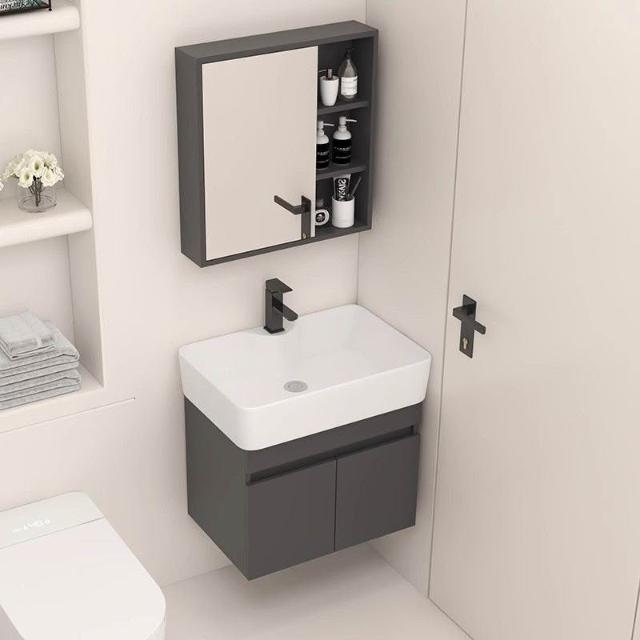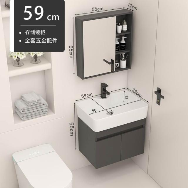 浴櫃 洗臉盆 洗漱臺 洗手盆 小戶型實木浴室櫃掛墻式洗臉盆組閤陶瓷洗手盆一體盆極窄洗漱臺