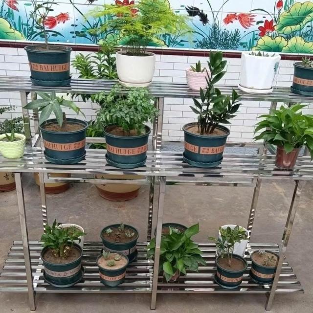 不鏽鋼花架 盆栽架 花盆架 多肉架 陽臺客廳落地式鐵藝多肉置物架不銹鋼雙層花盆架子植物二層直立式
