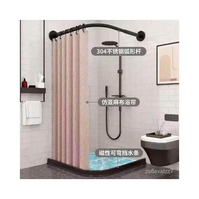 免運 浴簾免打孔弧形浴簾 L型伸縮桿 U型浴簾桿 浴室淋浴房 防水隔斷簾 免鑽 免釘 磁性浴簾 弧形不鏽鋼桿