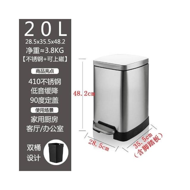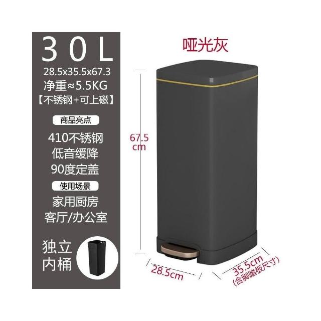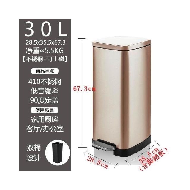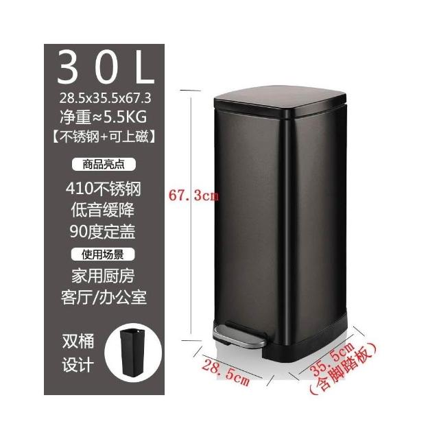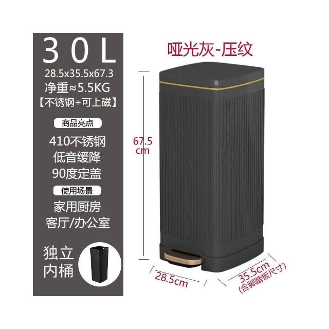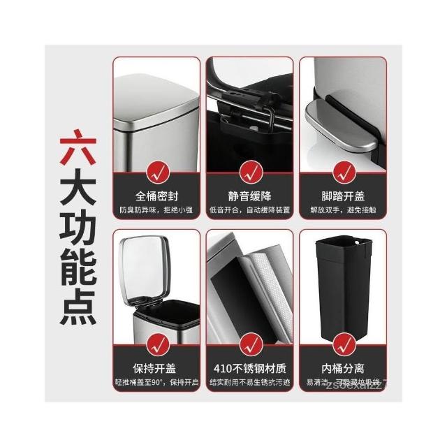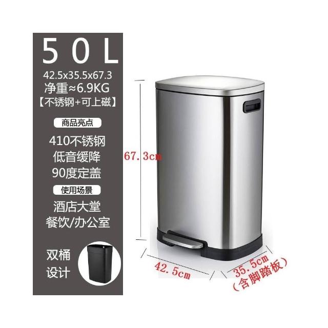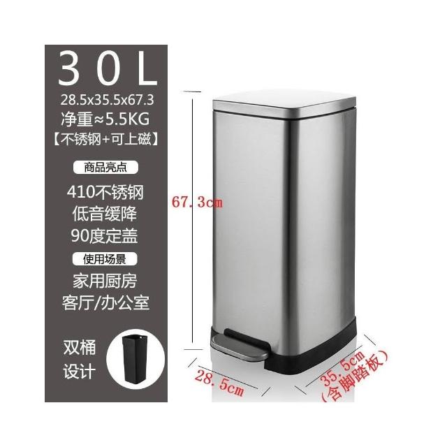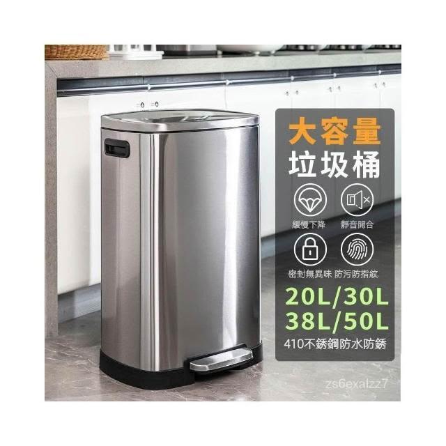 免運 不鏽鋼垃圾桶 30L垃圾桶 廚房 客廳 帶蓋垃圾桶 腳踏式 50L大號垃圾箱 大容量 辦公室 踩踏