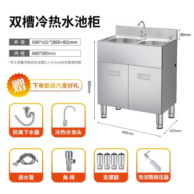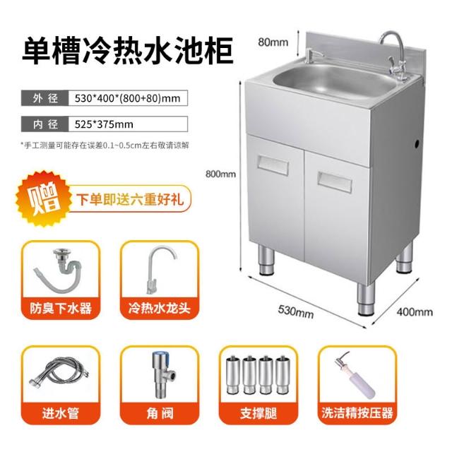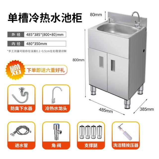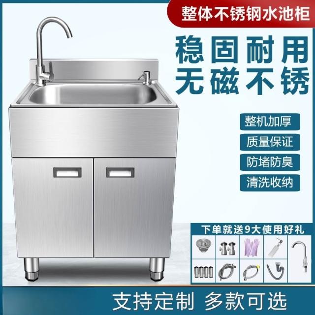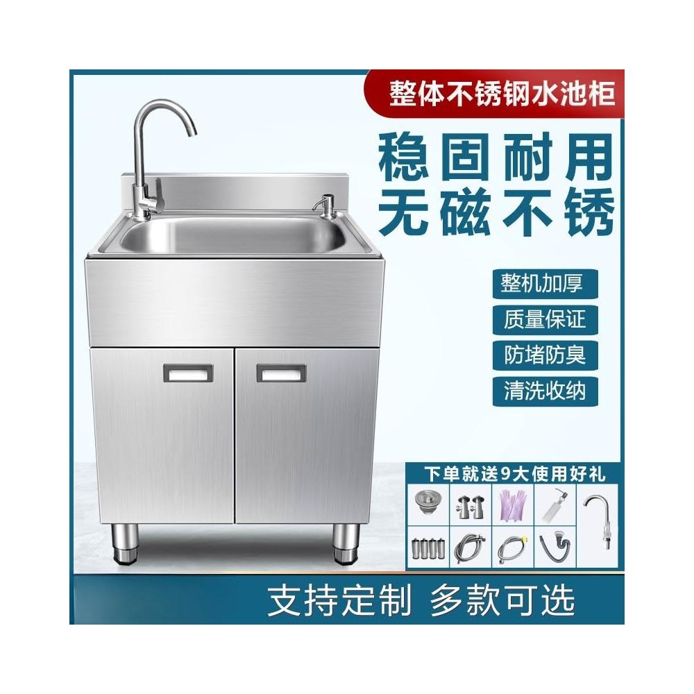 不鏽鋼水槽櫃 洗手盆 櫥櫃 304不銹鋼家用水槽水盆水池柜子廚房陽台洗菜洗碗洗手一體加厚