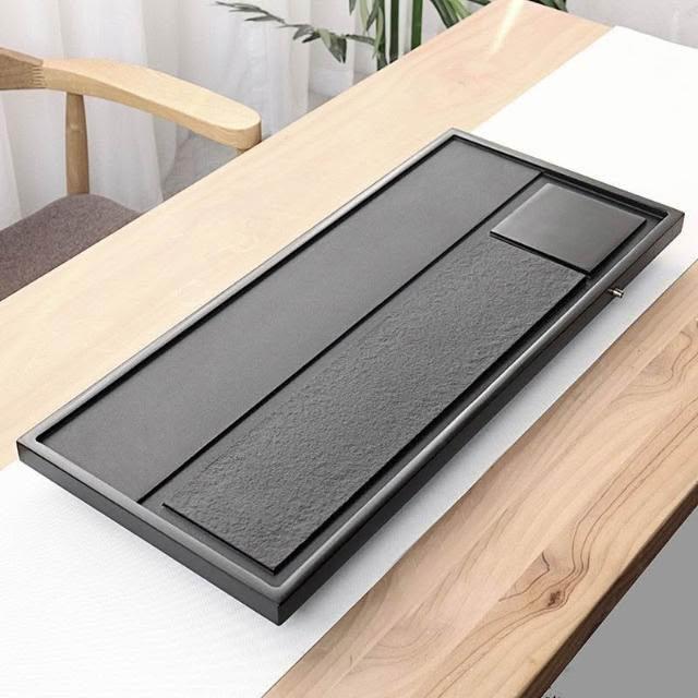 熱銷💖茶盤 石製茶盤 烏金石茶盤 茶具 家用 天然烏金石茶盤 石頭帶排水 茶臺 高檔 客廳簡約 石盤 整塊原石 泡茶