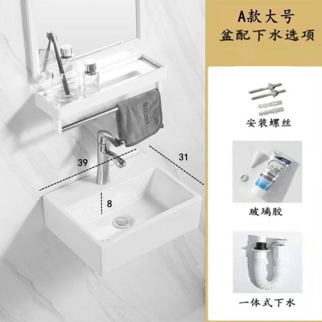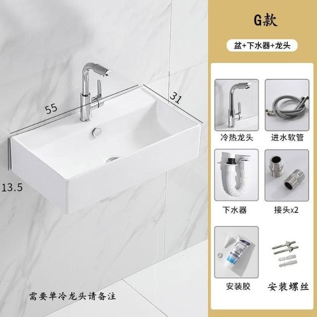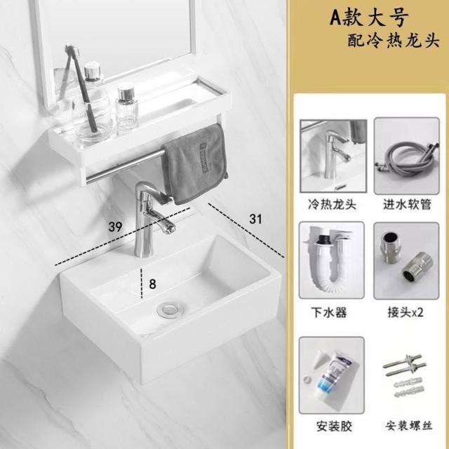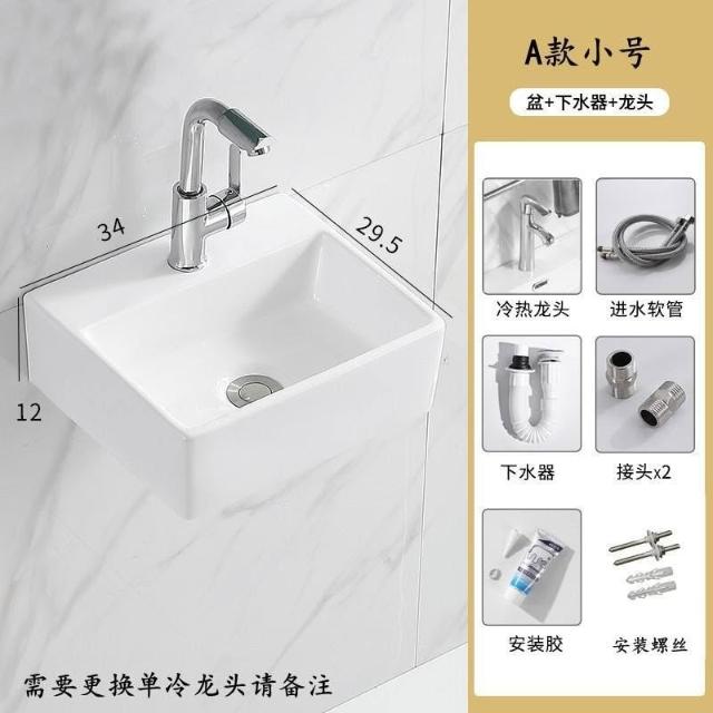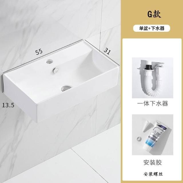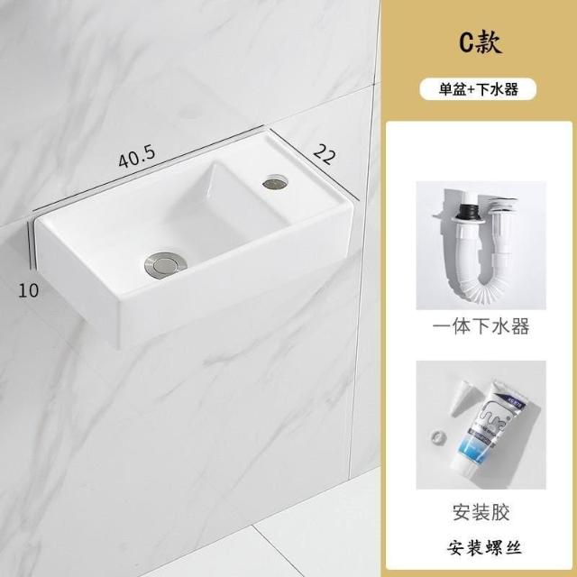 熱賣💛陶瓷盆 洗手盆 浴室盆 掛墻 水槽 洗手池 掛墻式洗手盆洗臉盆小號掛墻臉盆小衛生間壁掛式陶瓷盆扁長洗手盆