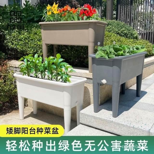 熱賣🌈特大陽臺種菜盆高腳長方形塑料加厚種植盆家用樓頂種菜神器自吸水 長方形花盆 大花盆 花箱 別墅花盆 盆栽