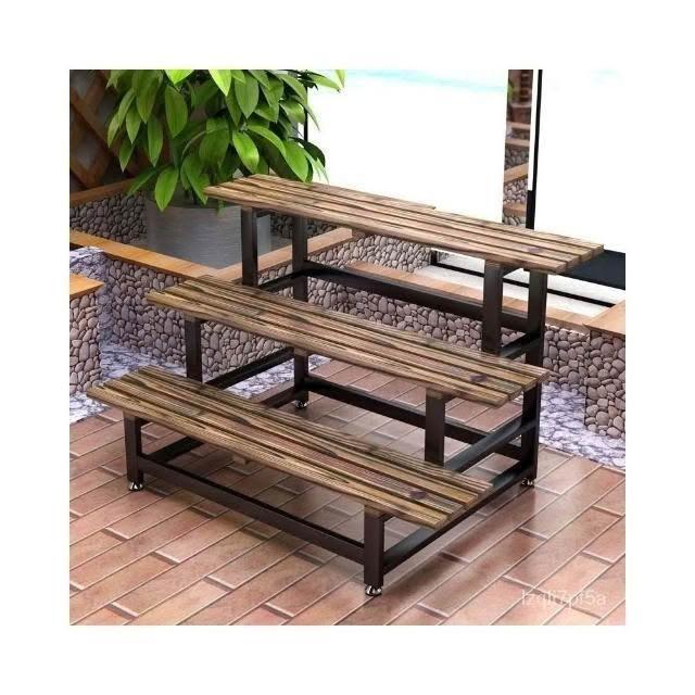 熱銷 陽台階梯花架室外鐵藝多層花盆架盆栽多肉花架子庭院防腐木置物架 階梯式花架 盆栽架