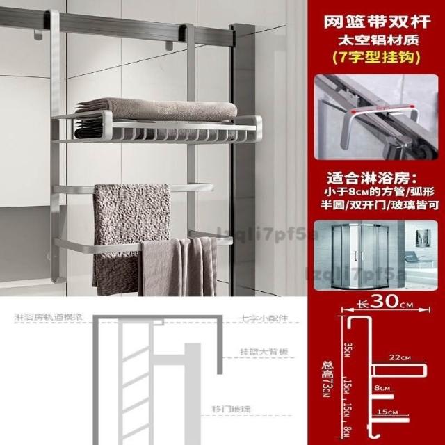 ✨*免運✨ 浴室毛巾掛架衛生間置物架免打孔門後淋浴房玻璃門浴巾輕奢毛巾桿#淋浴房置物架 收納架 毛巾架 浴巾架