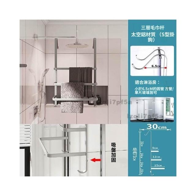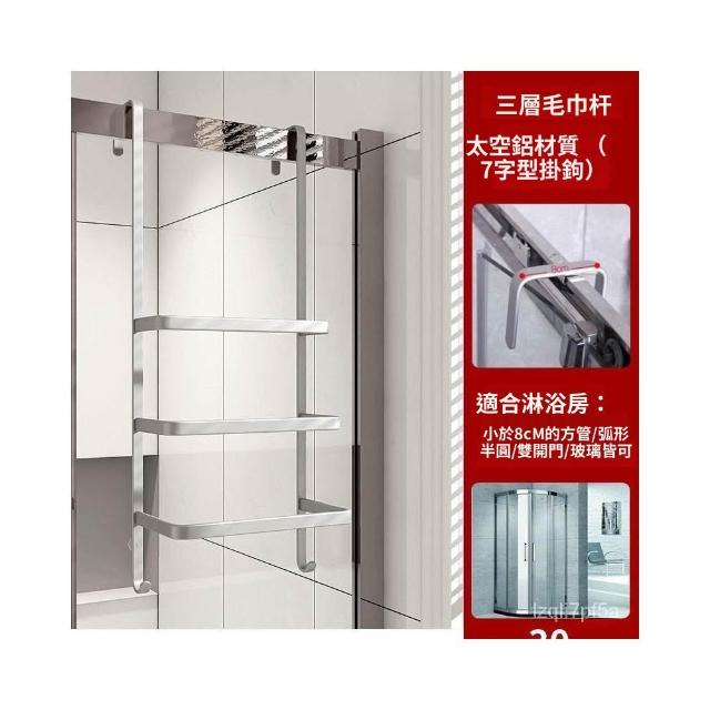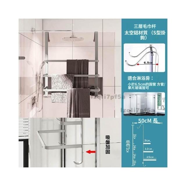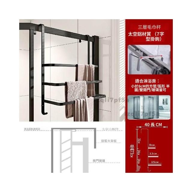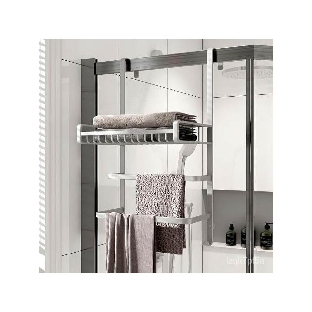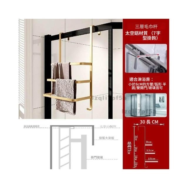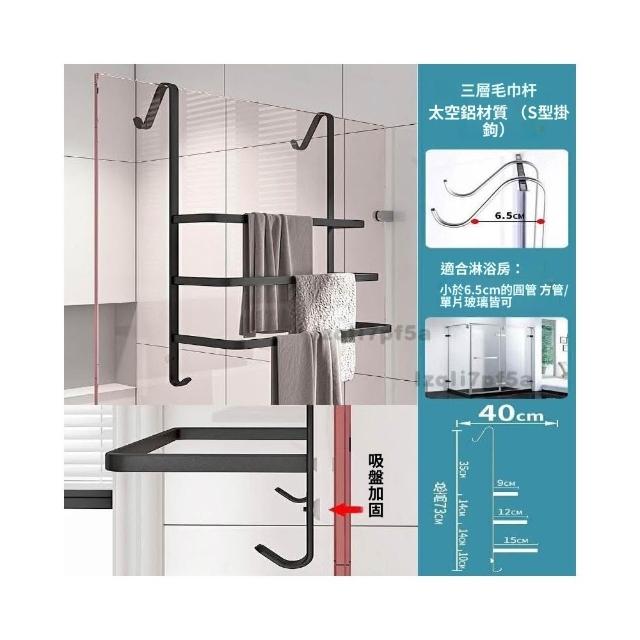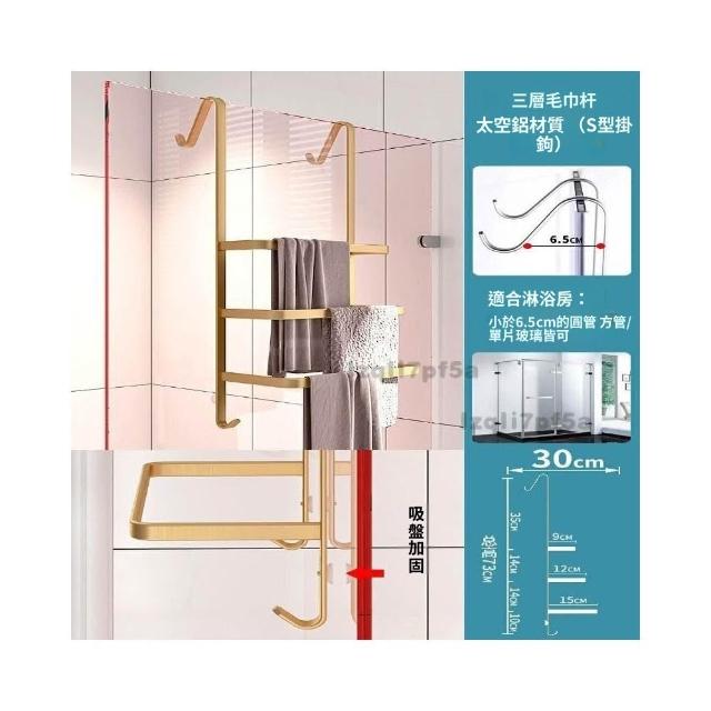 ✨*免運✨ 浴室毛巾掛架衛生間置物架免打孔門後淋浴房玻璃門浴巾輕奢毛巾桿#淋浴房置物架 收納架 毛巾架 浴巾架