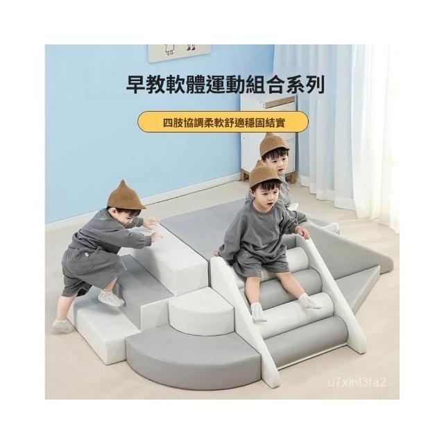 工廠直銷 免運 寶寶感統訓練攀爬梯早敎中心軟體爬滑組閤嬰兒樓梯室內軟包滑梯 可開票