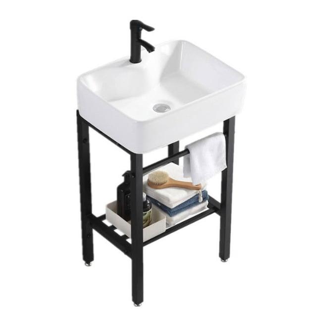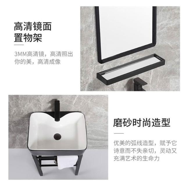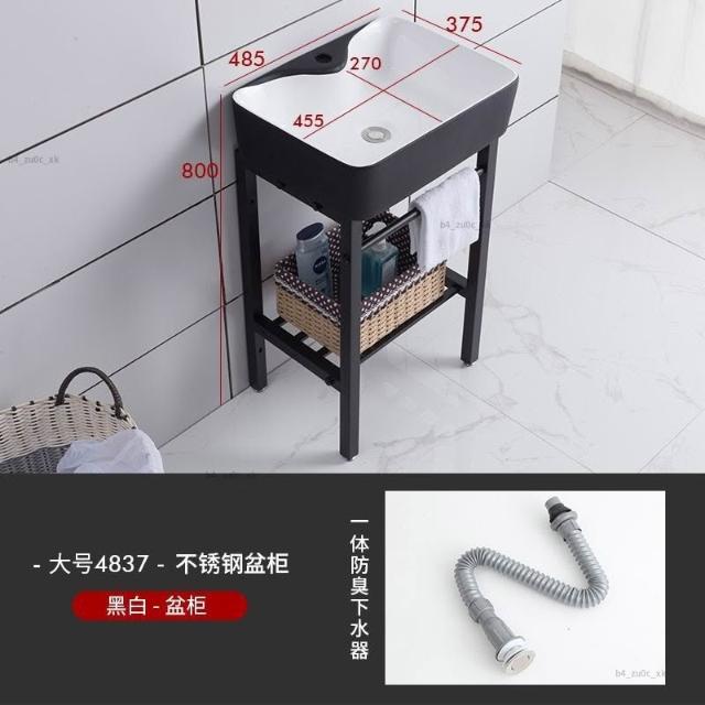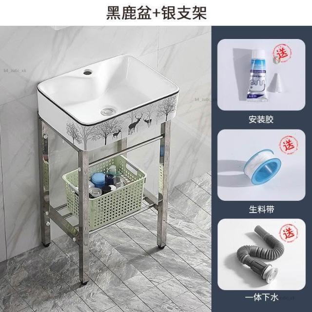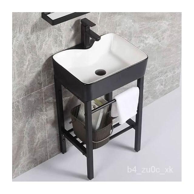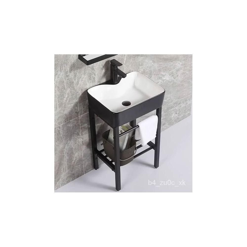 熱銷#免運 北歐落地式陶瓷洗手盆一體小戶型陽臺衛生間簡約不銹鋼支架洗臉盆浴室