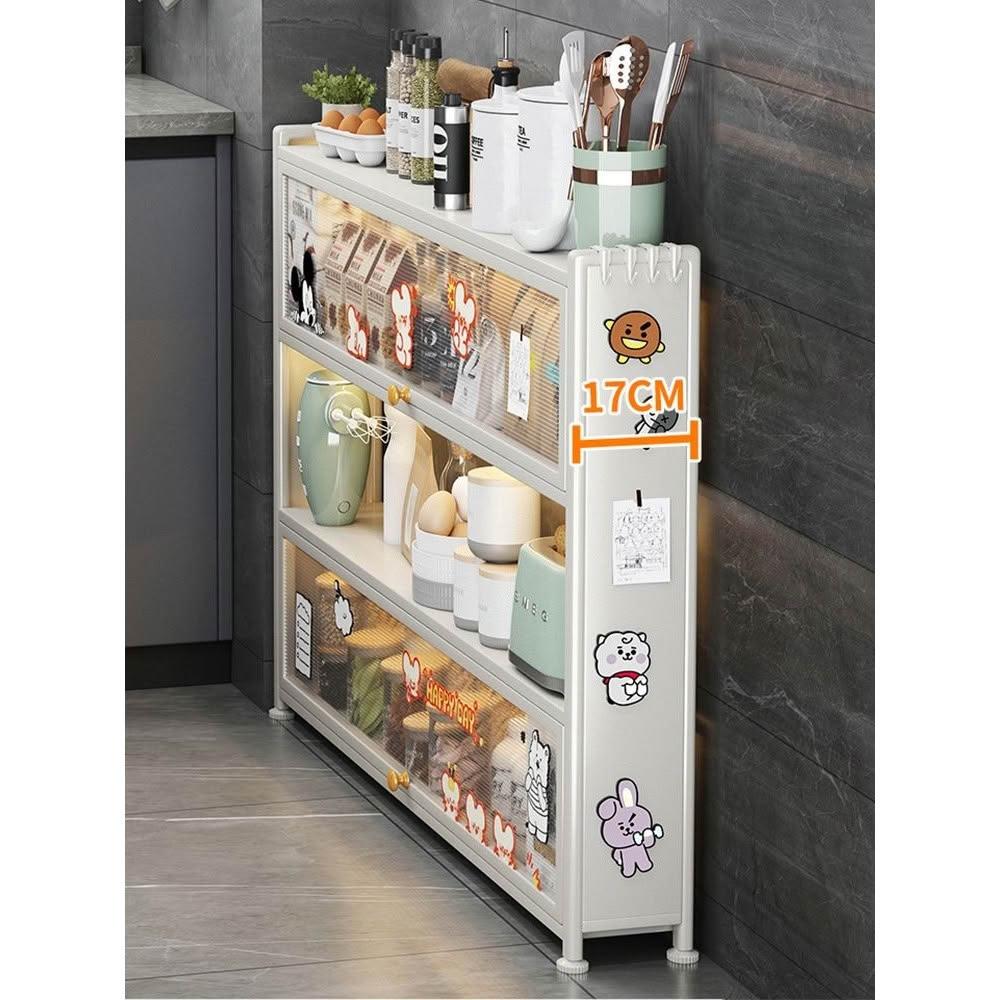 置物架 超扁收納櫃 廚房置物架超薄墻邊小窄櫃落地多層帶門極窄儲物收納靠墻側邊薄櫃