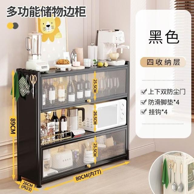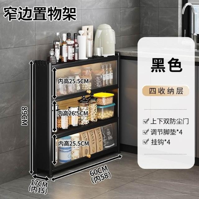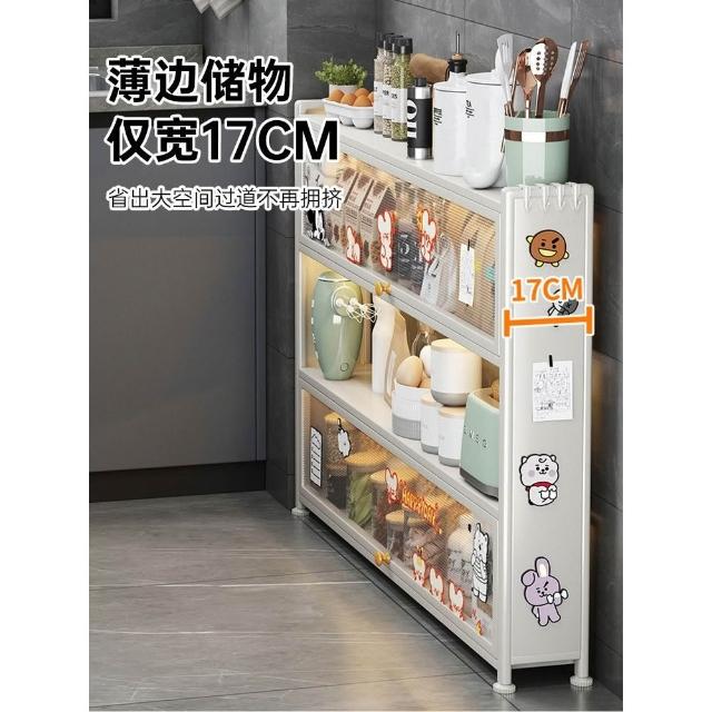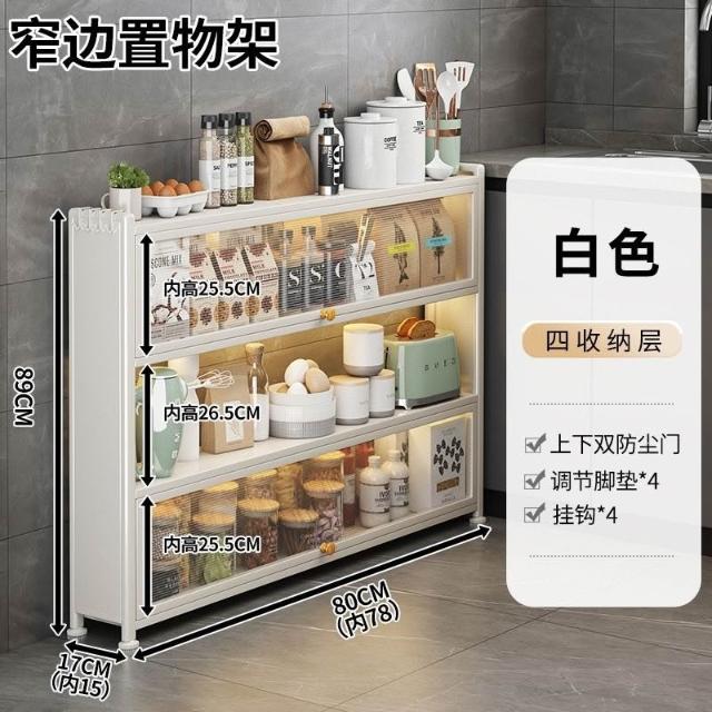 置物架 超扁收納櫃 廚房置物架超薄墻邊小窄櫃落地多層帶門極窄儲物收納靠墻側邊薄櫃