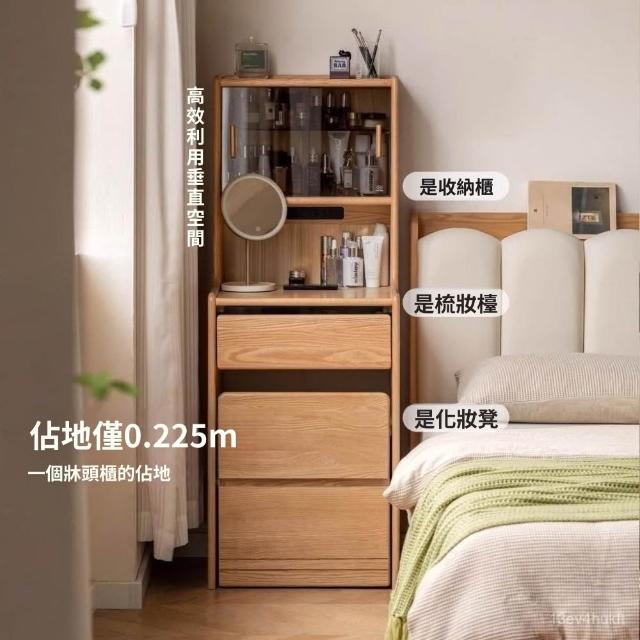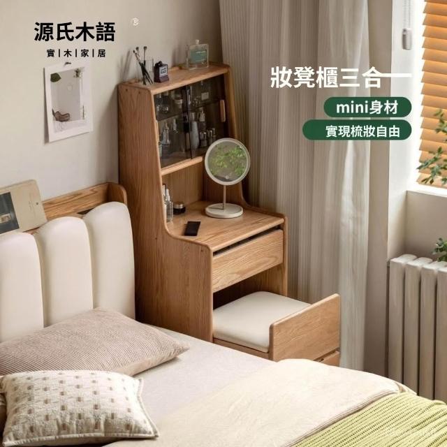 📣新品免運📣源氏木語實木梳妝臺收納櫃一體臥室現代簡約床頭化妝桌橡木小戶型