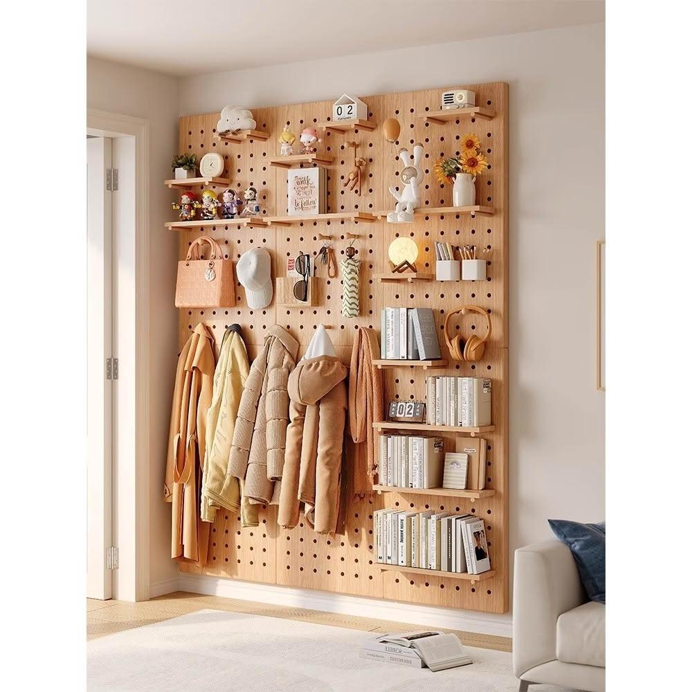 洞洞板 實木洞洞板 置物架掛板 牆上置物架 木質可定製入戶玄關門口牆面縫紉機線架