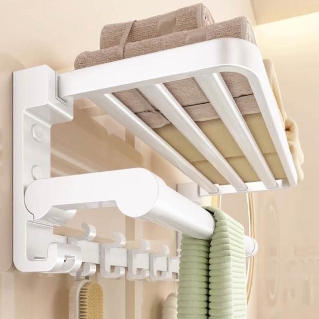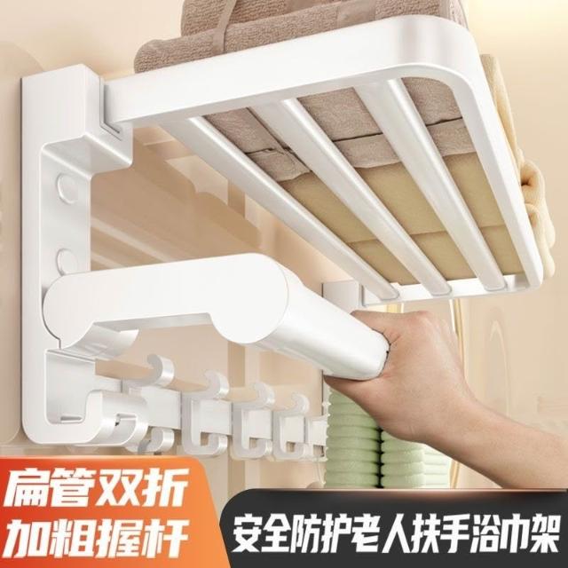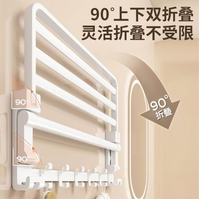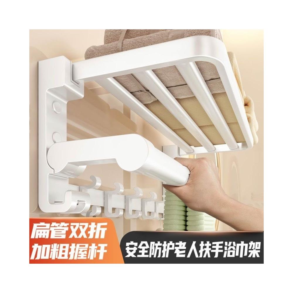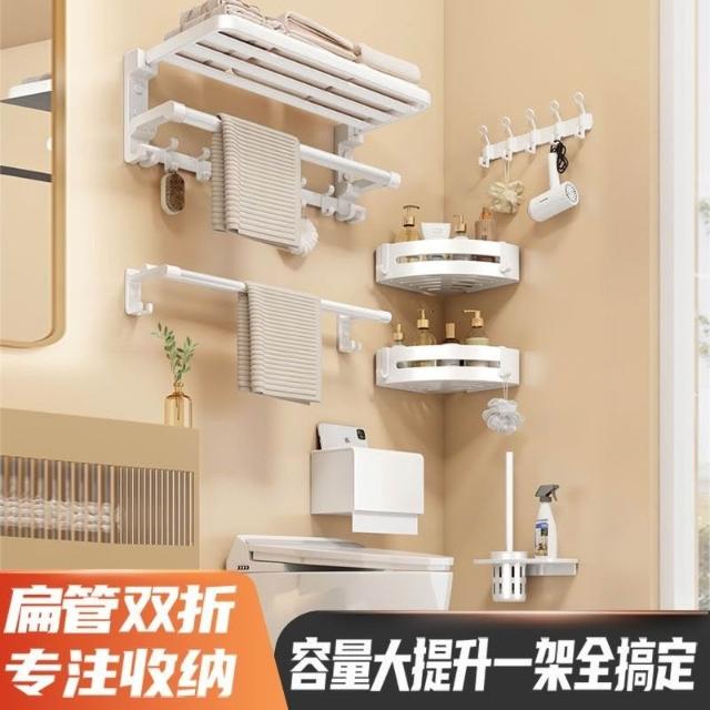 置物架 浴室收納架 衛生間收納 白色浴巾架毛巾架太空鋁免打孔衛生間浴室掛桿置物架壁厠所毛巾掛