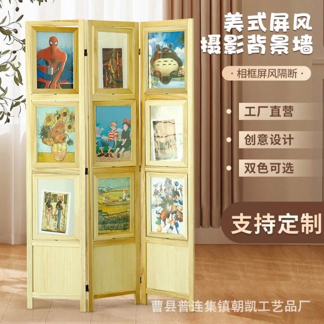 屏風 實木屏風 隔斷 實木簡約新中式花格屏風相框木質現代客廳餐廳酒店花格柵屏風隔斷