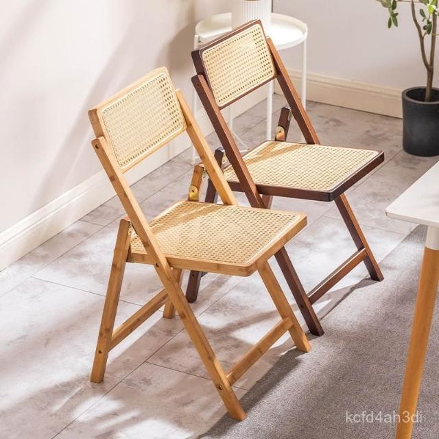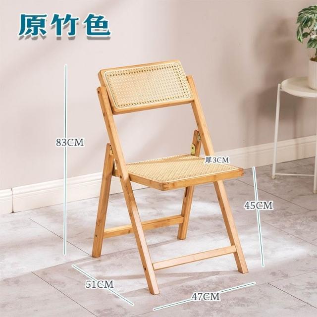 折疊餐椅 藤編椅 傢用小型實木椅 北歐實木座椅 民宿靠背椅 簡約現代靠背原木椅子 日式休閒藤椅