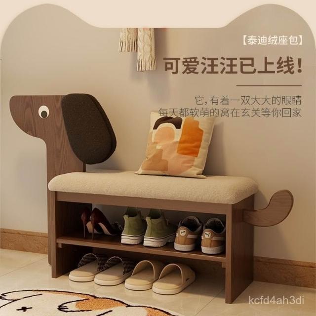實木穿鞋椅鞋架 玄關小狗換鞋凳 換鞋櫃 門口入戶鞋櫃 兒童坐凳收納換鞋椅 木製可愛創意造型雙層鞋櫃可坐收納櫃穿鞋凳長條凳