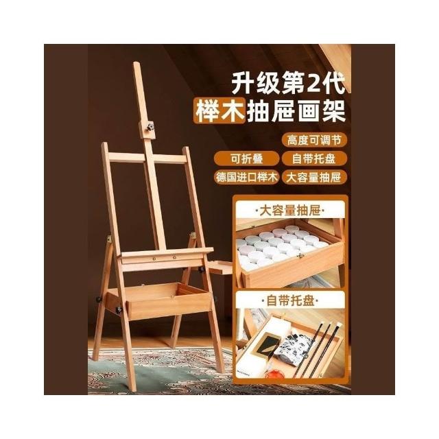 德國櫸木可折疊畫架 畫板架 美術生專用素描畫架 支架式寫生畫架 抽屜式收納油畫架 平立兩用實木質