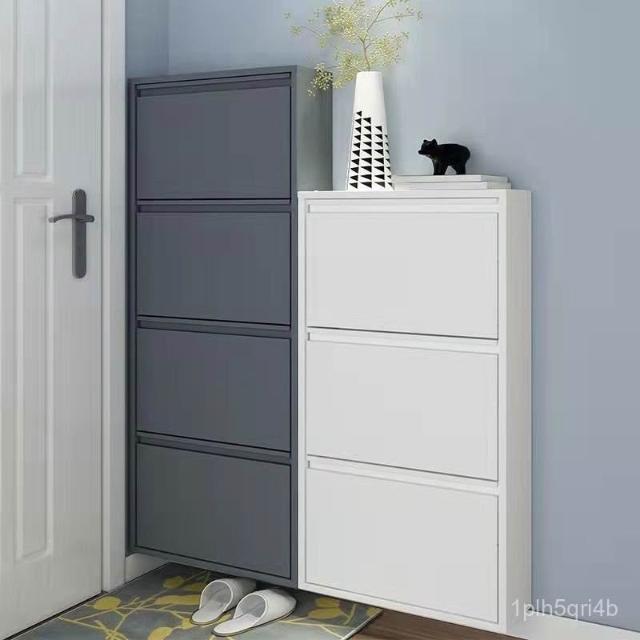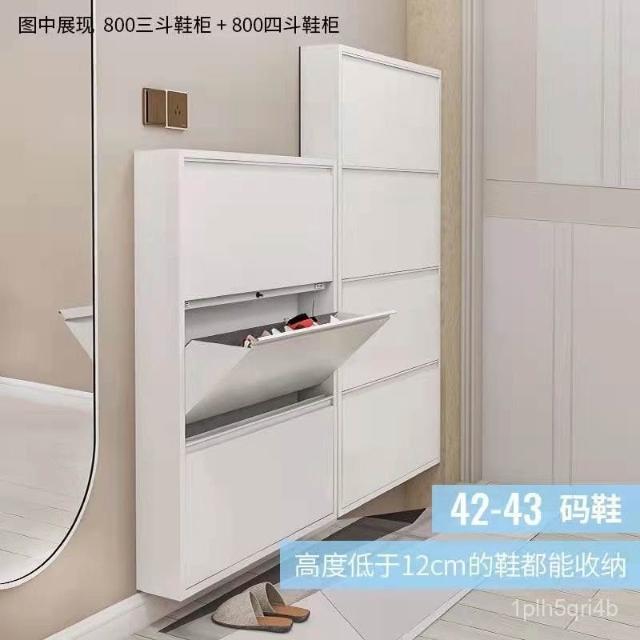 12cm超薄鋼製翻鬥鞋櫃掛墻懸空小戶型北歐風簡約窄鞋櫥防黴玄關櫃 超薄鞋櫃 薄型鞋櫃 收納櫃 鞋架 換鞋櫃