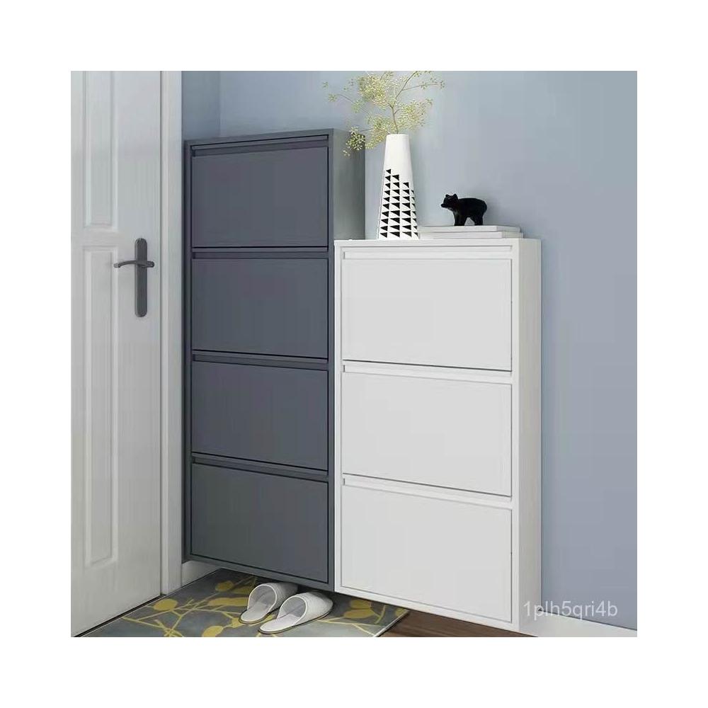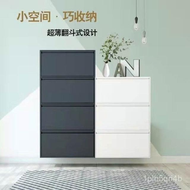 12cm超薄鋼製翻鬥鞋櫃掛墻懸空小戶型北歐風簡約窄鞋櫥防黴玄關櫃 超薄鞋櫃 薄型鞋櫃 收納櫃 鞋架 換鞋櫃